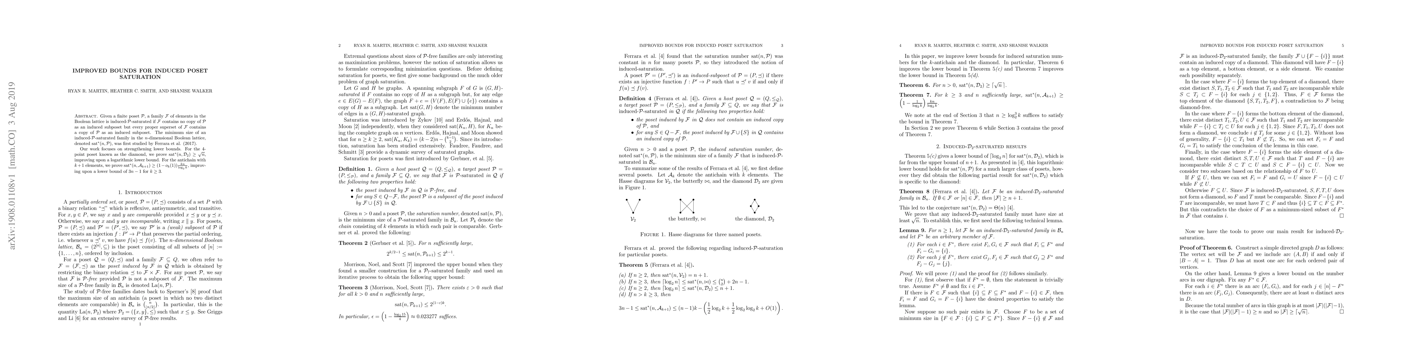 Researchers improved lower bounds for induced poset saturation in Boolean lattices, achieving improvements over previous logarithmic bounds for specific posets.