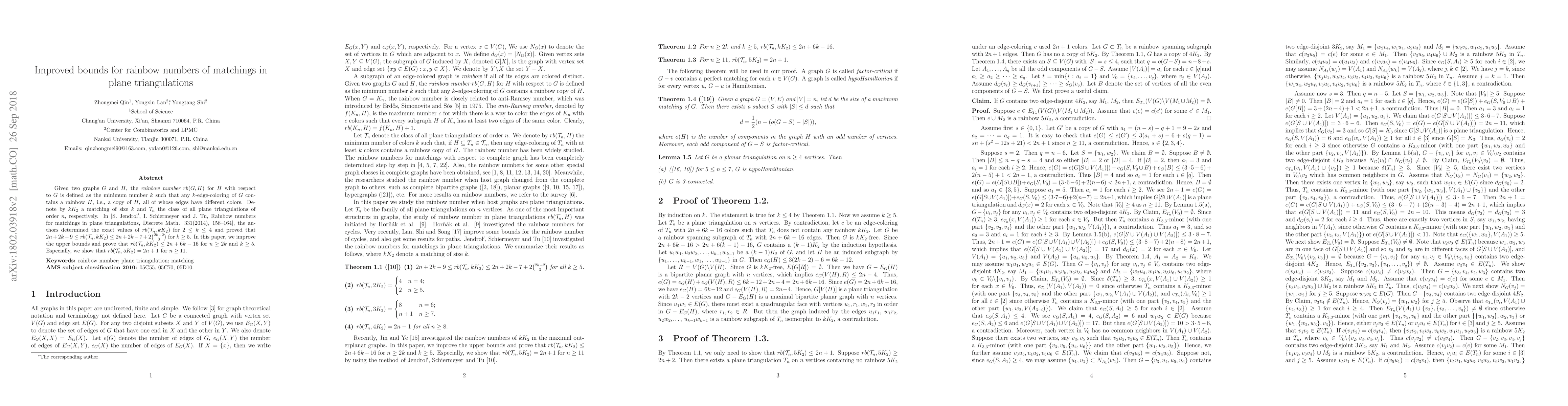 Given two graphs $G$ and $H$, the {\it rainbow number} $rb(G,H)$ for $H$ with respect to $G$ is defined as the minimum number $k$ such that any $k$-edge-coloring of $G$ contains a rainbow $H$, i.e., a copy of $H$, all of whose edges have different colors. Denote by $kK_2$ a matching of size $k$ and $\mathcal {T}_n$ the class of all plane triangulations of order $n$, respectively. In [S. Jendrol$'$, I. Schiermeyer and J. Tu, Rainbow numbers for matchings in plane triangulations, Discrete Math. 331(2014), 158--164], the authors determined the exact values of $rb(\mathcal {T}_n, kK_2)$ for $2\leq k \le 4$ and proved that $2n+2k-9 \le rb(\mathcal {T}_n, kK_2) \le 2n+2k-7+2\binom{2k-2}{3}$ for $k \ge 5$. In this paper, we improve the upper bounds and prove that $rb(\mathcal {T}_n, kK_2)\le 2n+6k-16$ for $n \ge 2k$ and $k\ge 5$. Especially, we show that $rb(\mathcal {T}_n, 5K_2)=2n+1$ for $n \ge 11$.
