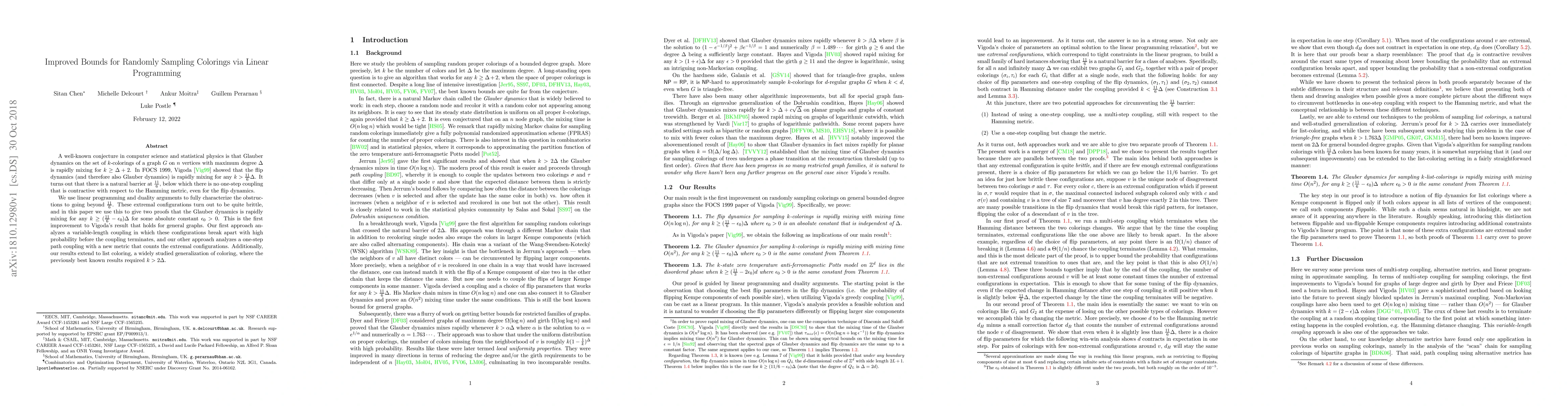 This paper improves bounds on the rapid mixing of Glauber dynamics for $k$-colorings of graphs, demonstrating it holds for $k\ge\left(\frac{11}{6} - \epsilon_0\right)\Delta$ using linear programming. The study also extends these findings to list coloring, requiring $k > 2\Delta$.