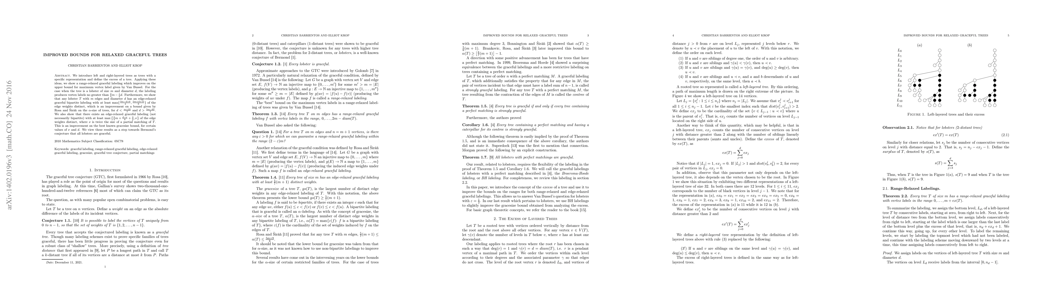 We introduce left and right-layered trees as trees with a specific representation and define the excess of a tree. Applying these ideas, we show a range-relaxed graceful labeling which improves on the upper bound for maximum vertex label given by Van Bussel. For the case when the tree is a lobster of size $m$ and diameter $d$, the labeling produces vertex labels no greater than $\frac{3}{2}m-\frac{1}{2}d$. Furthermore, we show that any lobster $T$ with $m$ edges and diameter $d$ has an edge-relaxed graceful bipartite labeling with at least $\max\{\frac{3m-d+6}{4},\frac{5m+d+15}{8}\}$ of the edge weights distinct, which is an improvement on a bound given by Rosa and \v{S}ir\'{a}\v{n} on the $\alpha$-size of trees, for $d<\frac{m+22}{7}$ and $d>\frac{5m-65}{7}$. We also show that there exists an edge-relaxed graceful labeling (not necessarily bipartite) with at least $\max\left\{\frac{3}{4}m+\frac{d-\nu}{8}+\frac{3}{2},\nu\right\}$ of the edge weights distinct, where $\nu$ is twice the size of a partial matching of $T$. This is an improvement on the gracesize bound of Rosa and \v{S}ir\'{a}\v{n} for certain values of $\nu$ and $d$. We view these results as a step towards Bermond's conjecture.