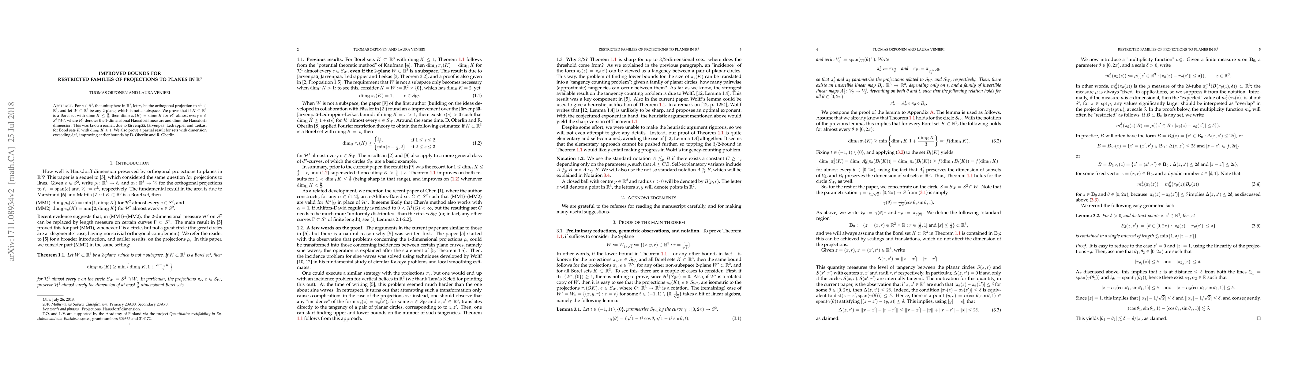 This paper improves bounds for projections of 2D planes to planes in 3D space, showing that the Hausdorff dimension is preserved for a wide range of sets with low dimensionality.