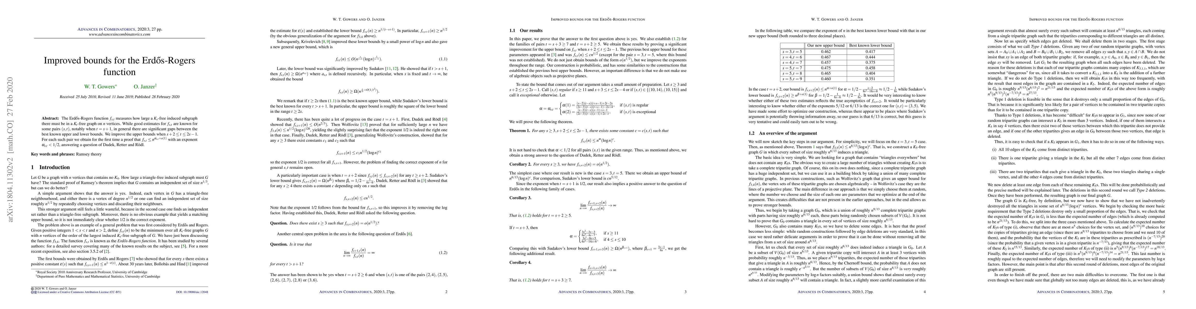 Researchers improved the upper bounds for the Erd\(o}s-Rogers function, providing a new proof that certain graphs contain large induced subgraphs without knowing their exact size.