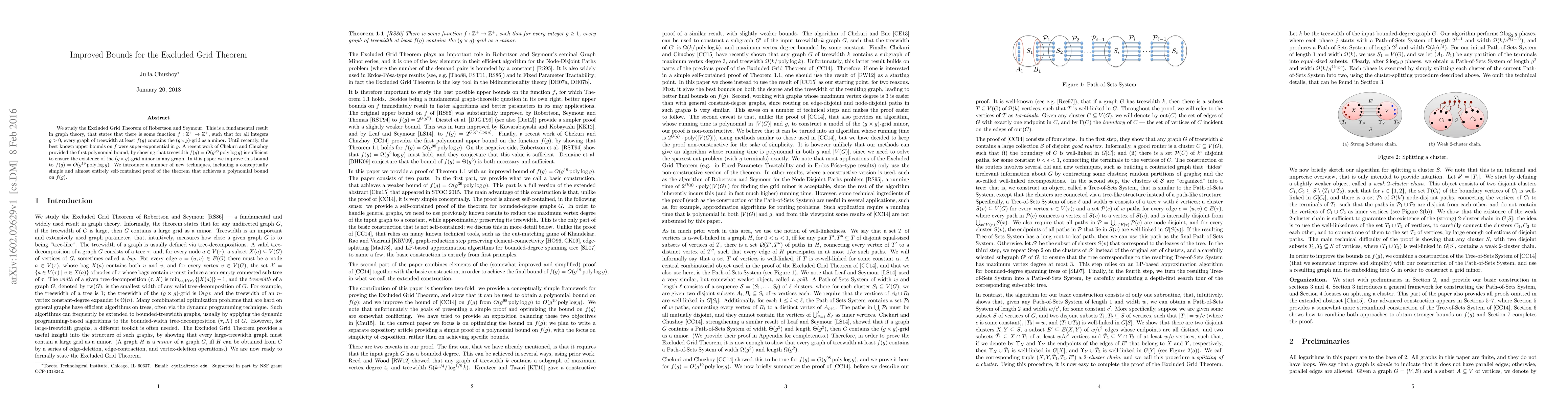 This paper enhances the Excluded Grid Theorem by improving the polynomial upper bound on the function $f(g)$ to $O(g^{19}\operatorname{poly}\log g)$, using novel techniques that offer a more straightforward proof compared to previous methods.