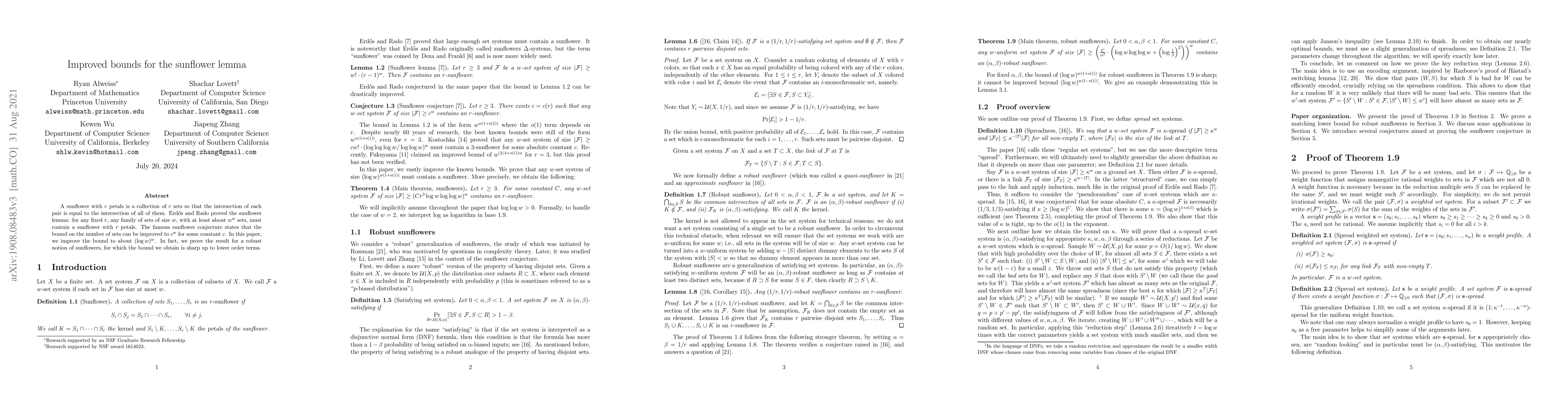 Researchers improved the bound for the sunflower lemma from $w^w$ to $( ext{log } w)^w$, bringing closer to solving the famous sunflower conjecture.