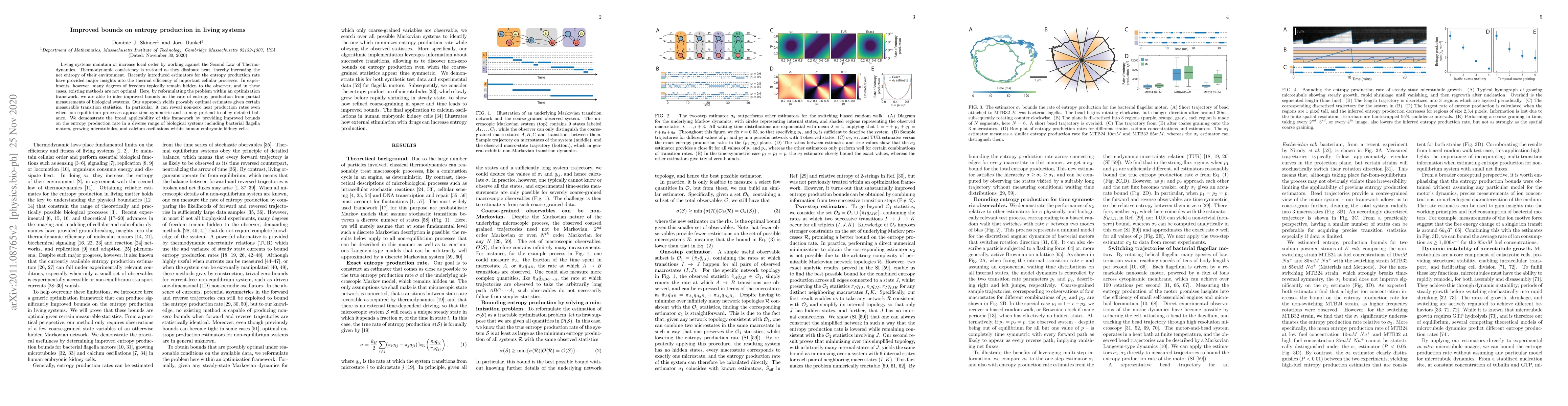 The paper introduces an optimization framework to infer improved bounds on entropy production in living systems, yielding optimal estimates from partial measurements. This approach reveals non-zero heat production rates in systems that seem time symmetric and can be applied across various biological processes like bacterial flagella motors and microtubule growth.