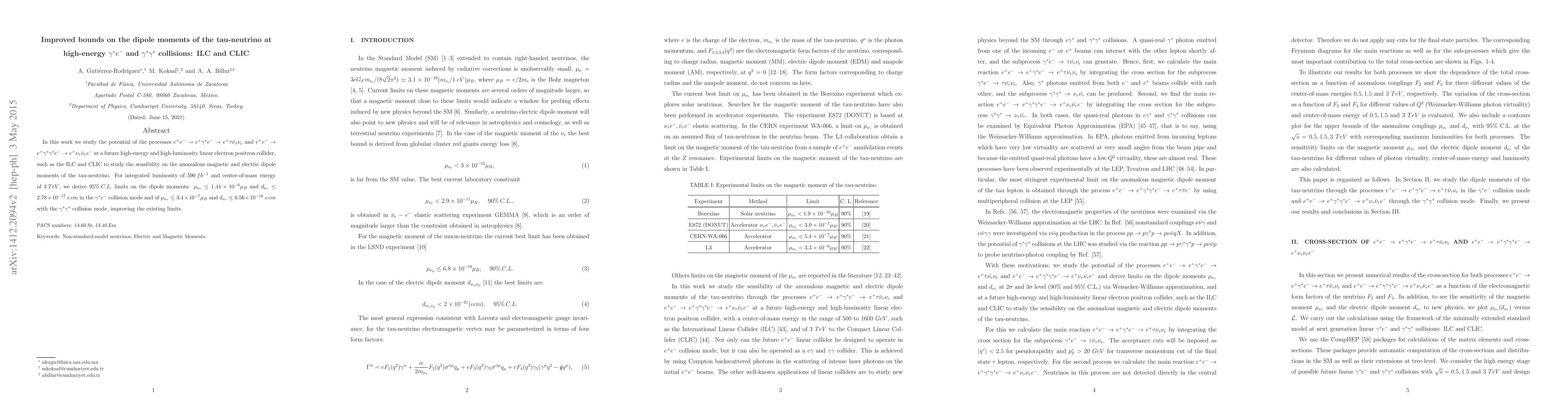This paper investigates the potential of high-energy linear colliders (ILC and CLIC) to study the anomalous magnetic and electric dipole moments of the tau-neutrino through specific collision processes, deriving improved upper limits on these dipole moments.