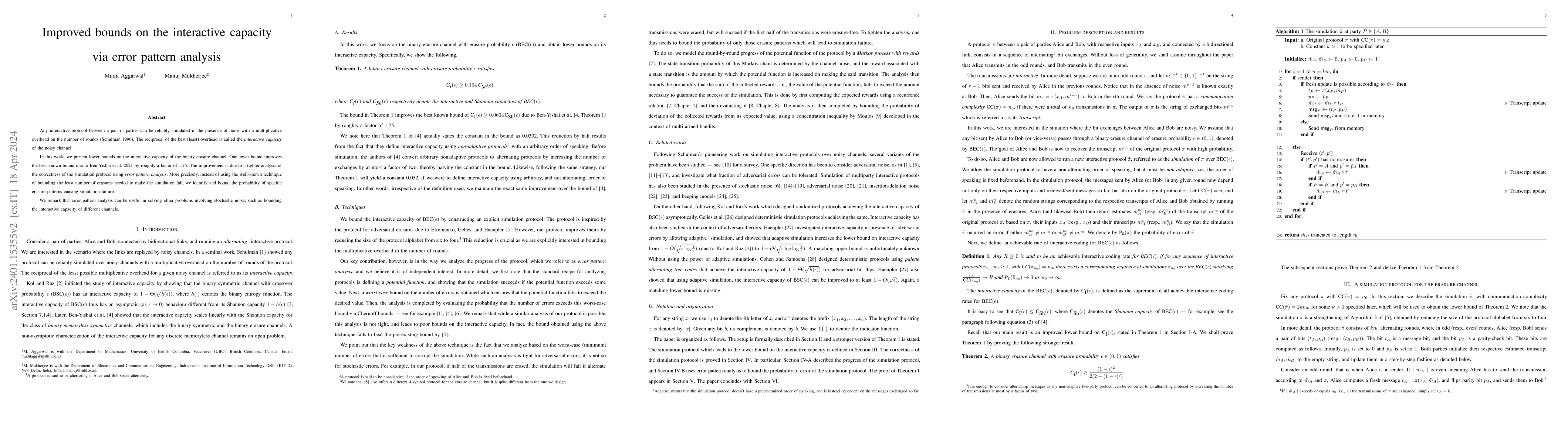 This paper presents improved lower bounds on the interactive capacity of the binary erasure channel, surpassing previous bounds by a factor of 1.75. The enhancement stems from a refined error pattern analysis instead of traditional failure probability calculations, indicating broader applicability to other noise-related problems.
