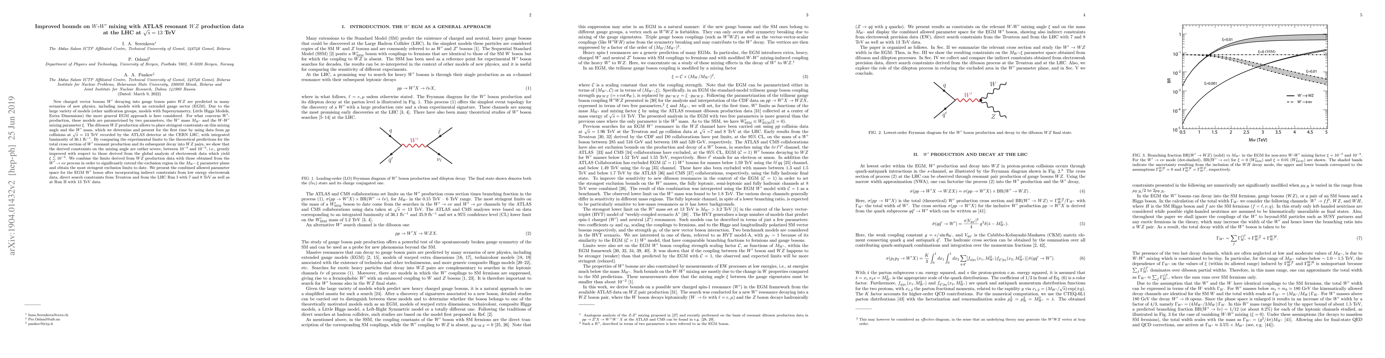 New charged vector bosons $W'$ decaying into gauge boson pairs $WZ$ are predicted in many scenarios of new physics, including models with an extended gauge sector (EGM). Due to the large variety of models (other unification groups, models with Supersymmetry, Little Higgs Models, Extra Dimensions) the more general EGM approach is here considered. For what concerns $W'$-production, these models are parametrised by two parameters, the $W^\prime$ mass $M_{W^\prime}$ and the $W$-$W^\prime$ mixing parameter $\xi$. The diboson $WZ$ production allows to place stringent constraints on this mixing angle and the $W'$ mass, which we determine and present for the first time by using data from $pp$ collisions at $\sqrt{s}=13$ TeV recorded by the ATLAS detector at the CERN LHC, with integrated luminosity of 36.1 fb$^{-1}$. By comparing the experimental limits to the theoretical predictions for the total cross section of $W'$ resonant production and its subsequent decay into $WZ$ pairs, we show that the derived constraints on the mixing angle for the benchmark model are rather small, between $10^{-4}$ and $10^{-3}$, i.e., greatly improved with respect to those derived from the global analysis of electroweak data which yield $\xi\sim 10^{-2}$. We combine the limits derived from $WZ$ production data with those obtained from the $W'\to e\nu$ process in order to significantly extend the exclusion region in the $M_{W'}$-$\xi$ parameter plane and obtain the most stringent exclusion limits to date. We present the combined allowed parameter space for the EGM $W'$ boson after incorporating indirect constraints from low energy electroweak data, direct search constraints from Tevatron and from the LHC Run I with 7 and 8 TeV as well as at Run II with 13 TeV data.