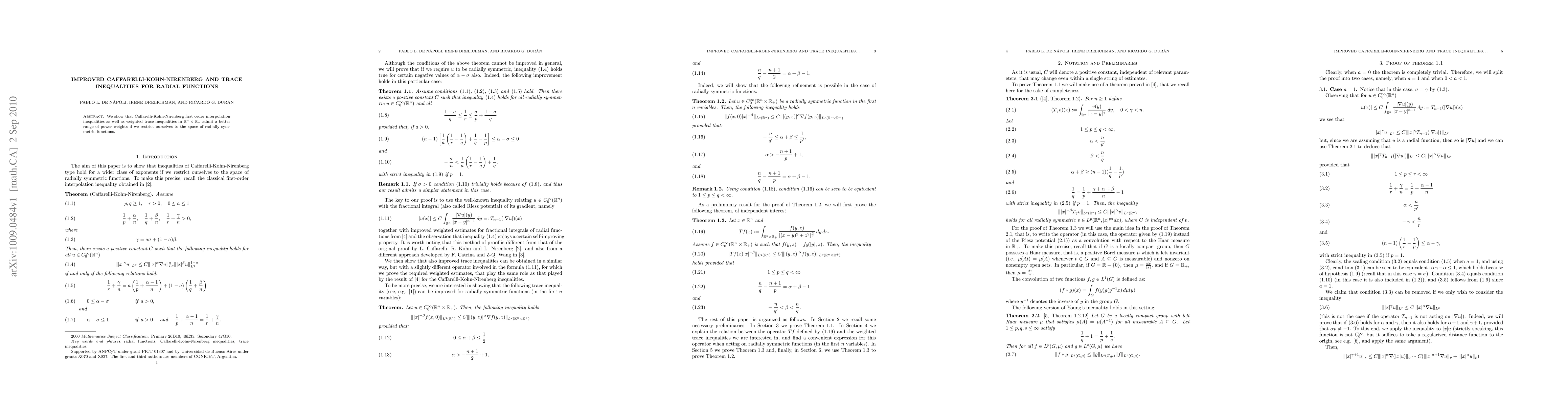 Summary: This paper demonstrates enhanced Caffarelli-Kohn-Nirenberg interpolation inequalities and weighted trace inequalities for radially symmetric functions, revealing a broader range of applicable power weights compared to general functions.