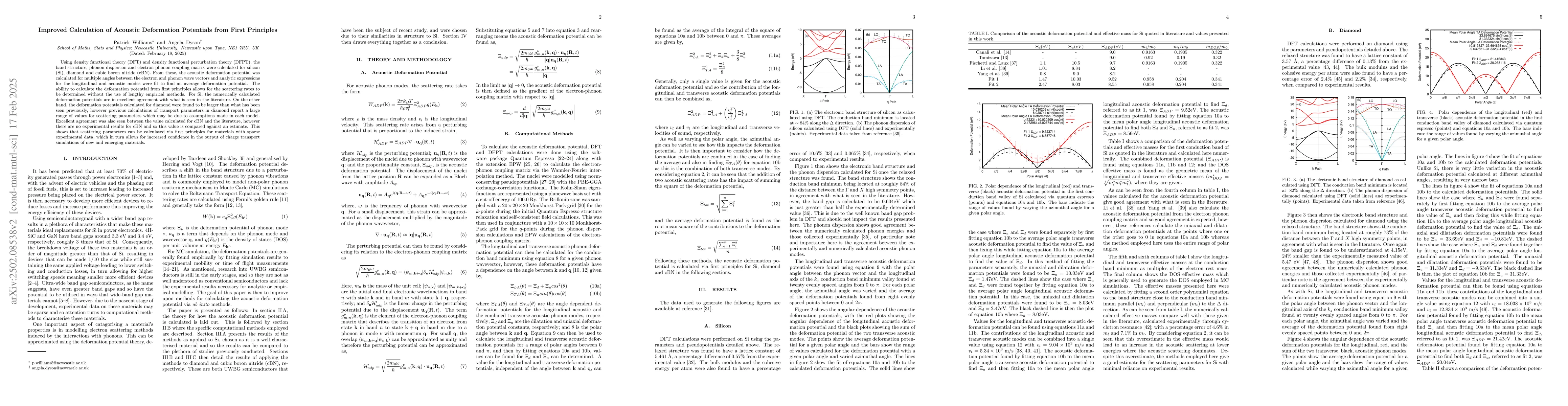This research introduces an advancement in calculating acoustic deformation potentials using DFT and DFPT, offering a first-principles-based method to determine scattering parameters, which is particularly beneficial for materials with limited experimental data.