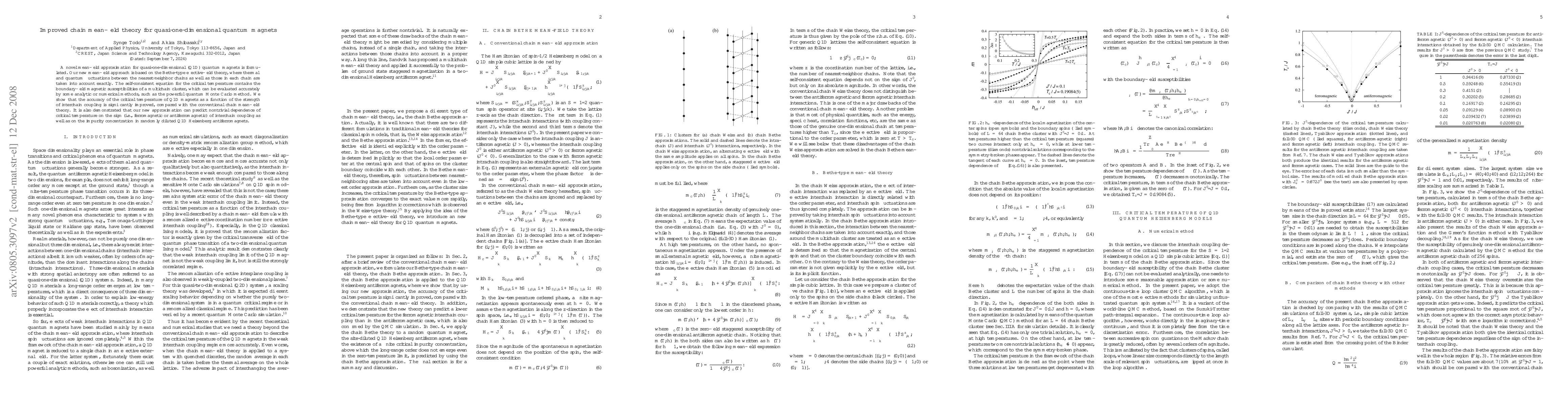 This paper introduces a refined mean-field theory for quasi-one-dimensional quantum magnets, improving upon conventional methods by accurately accounting for both intra- and inter-chain fluctuations. The new approach predicts more accurate critical temperatures and captures the effects of interchain coupling and impurity concentrations.