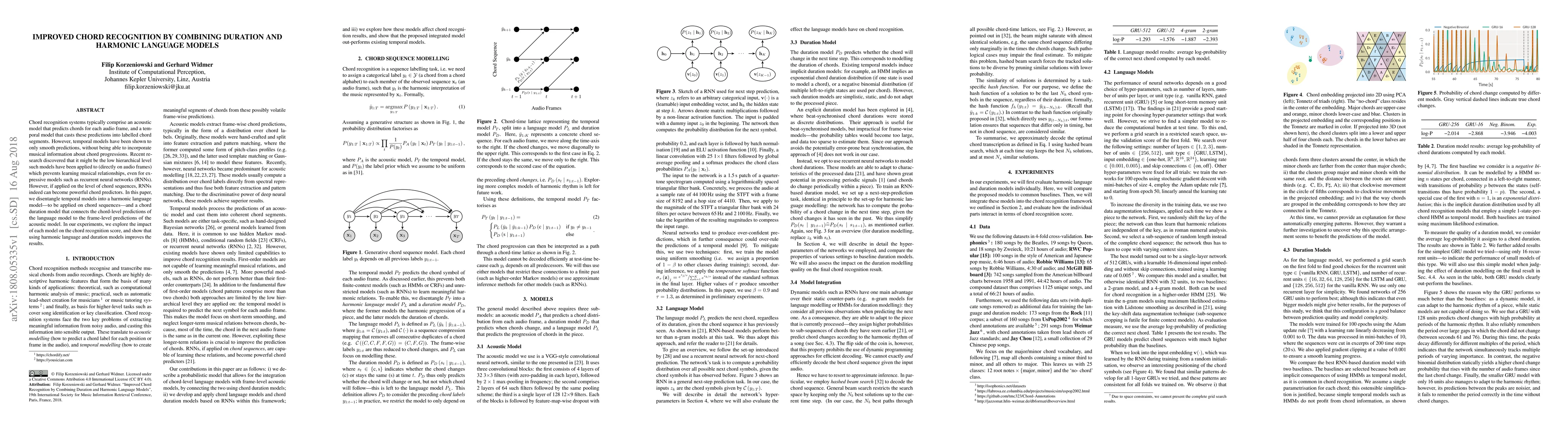 This paper proposes a method to enhance chord recognition by separating temporal models into a harmonic language model for chord sequences and a chord duration model linking frame-level predictions. Experiments demonstrate that combining these models significantly improves chord recognition accuracy.
