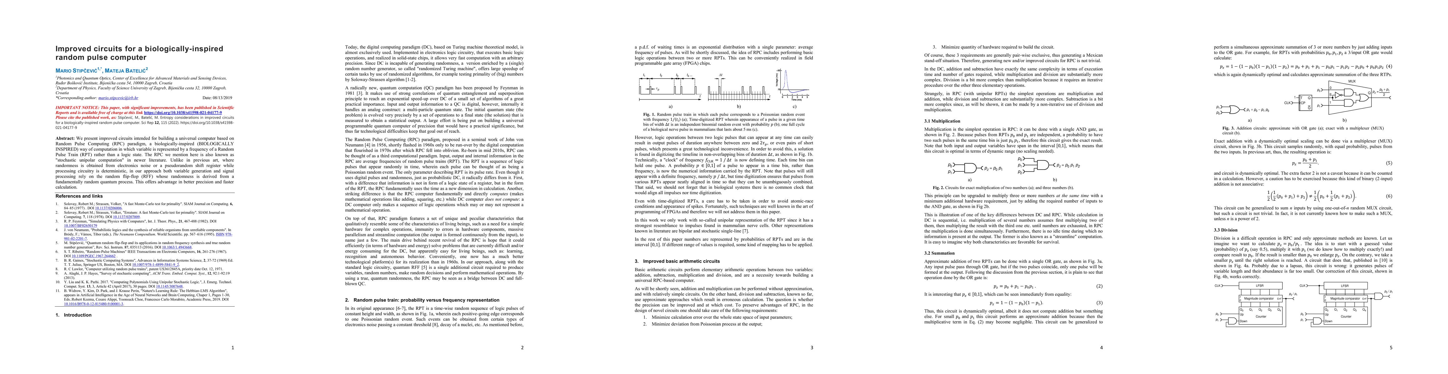 Researchers developed improved circuits for a biologically-inspired random pulse computer that uses fundamentally random quantum processes to generate variable values, offering better precision and faster calculation than previous approaches.