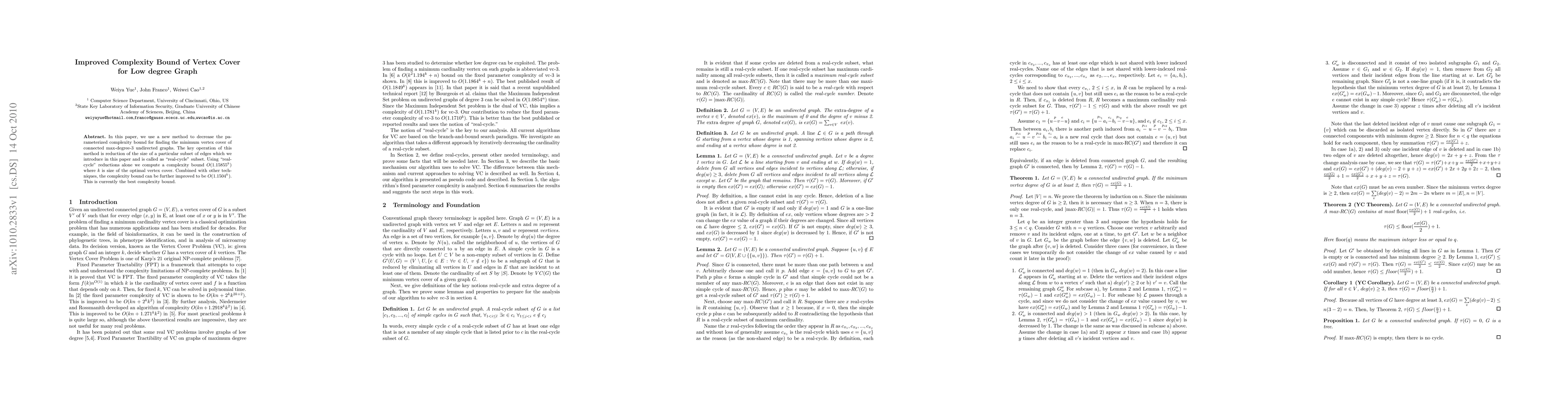 In this paper, we use a new method to decrease the parameterized complexity bound for finding the minimum vertex cover of connected max-degree-3 undirected graphs. The key operation of this method is reduction of the size of a particular subset of edges which we introduce in this paper and is called as "real-cycle" subset. Using "real-cycle" reductions alone we compute a complexity bound $O(1.15855^k)$ where $k$ is size of the optimal vertex cover. Combined with other techniques, the complexity bound can be further improved to be $O(1.1504^k)$. This is currently the best complexity bound.
