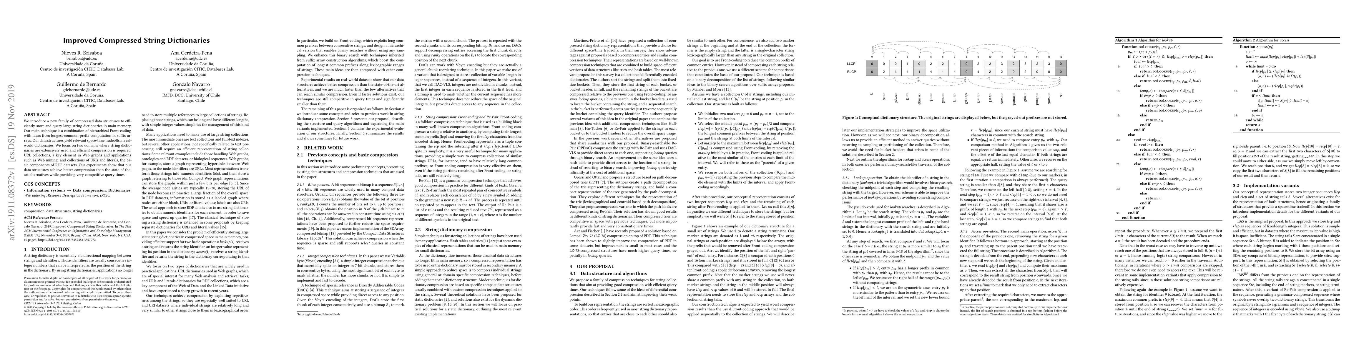This paper presents a new family of compressed string dictionaries combining hierarchical Front-coding with longest-common-prefix techniques, achieving superior compression and competitive query times for URL collections and RDF datasets compared to existing methods. Experimental results demonstrate better performance than state-of-the-art alternatives.