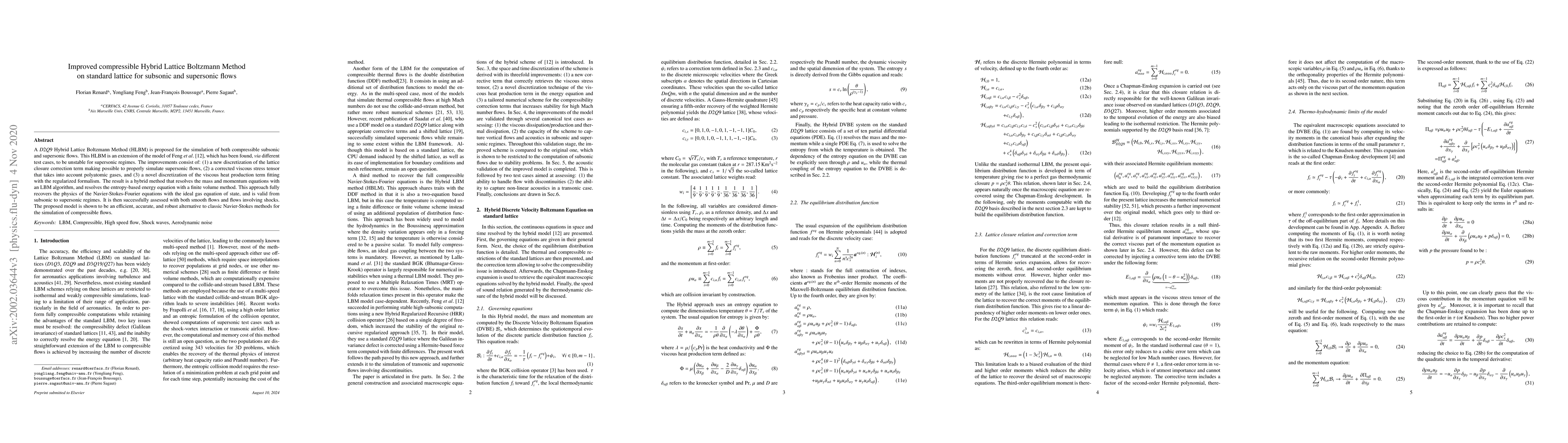 This paper proposes an improved D2Q9 Hybrid Lattice Boltzmann Method (HLBM) for simulating compressible subsonic and supersonic flows, addressing instability issues in the original model. The enhancements include a new discretization for supersonic flows, a corrected viscous stress tensor for polyatomic gases, and a novel discretization of the viscous heat production term. The method combines LBM and finite volume techniques to accurately resolve the Navier-Stokes-Fourier equations across flow regimes.