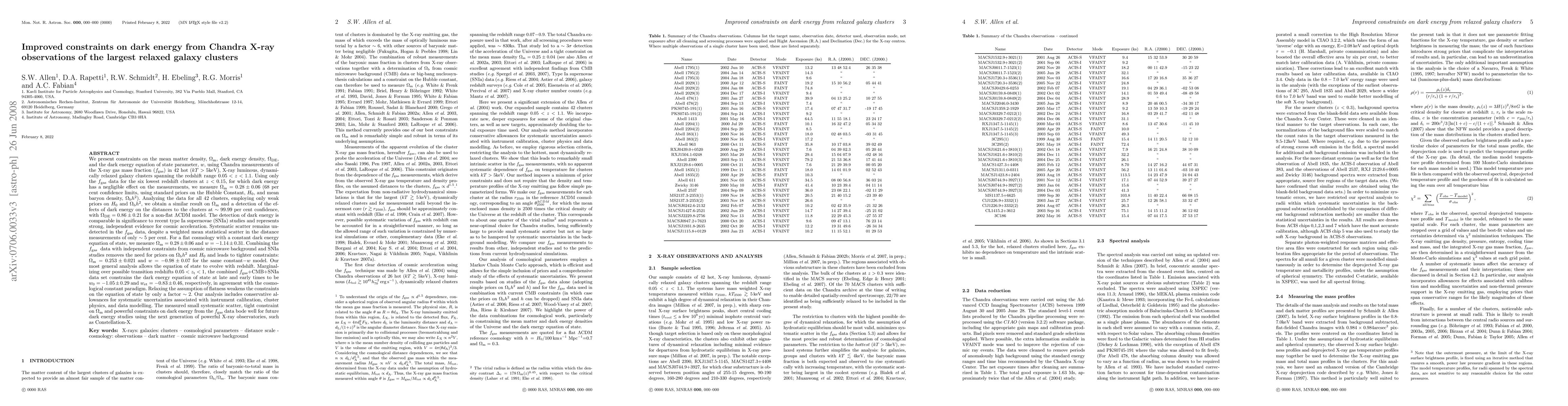 This paper uses Chandra X-ray observations of galaxy clusters to provide improved constraints on dark energy, finding Omega_m=0.28±0.06 and Omega_de=0.86±0.21, and detecting dark energy's effects at ~99.99% confidence. The analysis supports the cosmological constant model for dark energy.