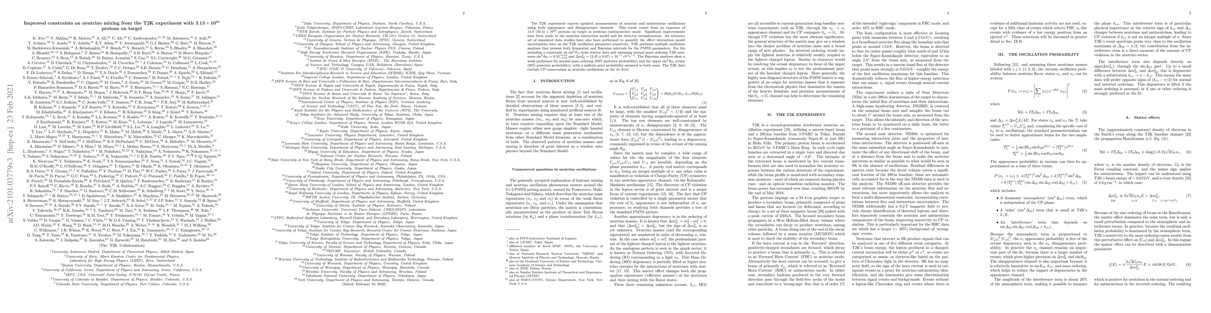 The T2K experiment provides improved constraints on neutrino mixing parameters, measuring $\sin^2\theta_{23} = 0.53^{+0.03}_{-0.04}$ and $\Delta{}m^2_{32} = (2.45 \pm 0.07) \times 10^{-3}$ eV$^{2}$c$^{-4}$. The results favor normal mass ordering and the upper octant for $\theta_{23}$ with Bayesian analyses.