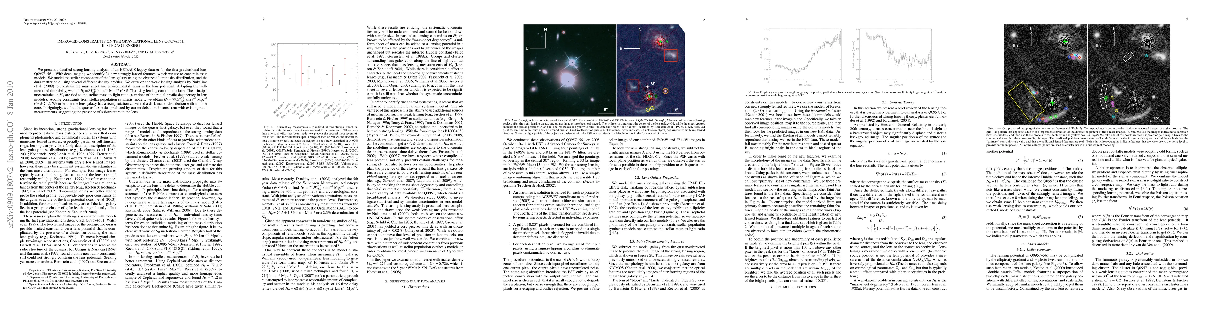 We present a detailed strong lensing analysis of an HST/ACS legacy dataset for the first gravitational lens, Q0957+561. With deep imaging we identify 24 new strongly lensed features, which we use to constrain mass models. We model the stellar component of the lens galaxy using the observed luminosity distribution, and the dark matter halo using several different density profiles. We draw on the weak lensing analysis by Nakajima et al. (2009) to constrain the mass sheet and environmental terms in the lens potential. Adopting the well-measured time delay, we find H_0 = 85 (+14/-13) km/s/Mpc (68% CL) using lensing constraints alone. The principal uncertainties in H_0 are tied to the stellar mass-to-light ratio (a variant of the radial profile degeneracy in lens models). Adding constraints from stellar population synthesis models, we obtain H_0 = 79.3 (+6.7/-8.5) km/s/Mpc (68% CL). We infer that the lens galaxy has a rising rotation curve and a dark matter distribution with an inner core. Intriguingly, we find the quasar flux ratios predicted by our models to be inconsistent with existing radio measurements, suggesting the presence of substructure in the lens.