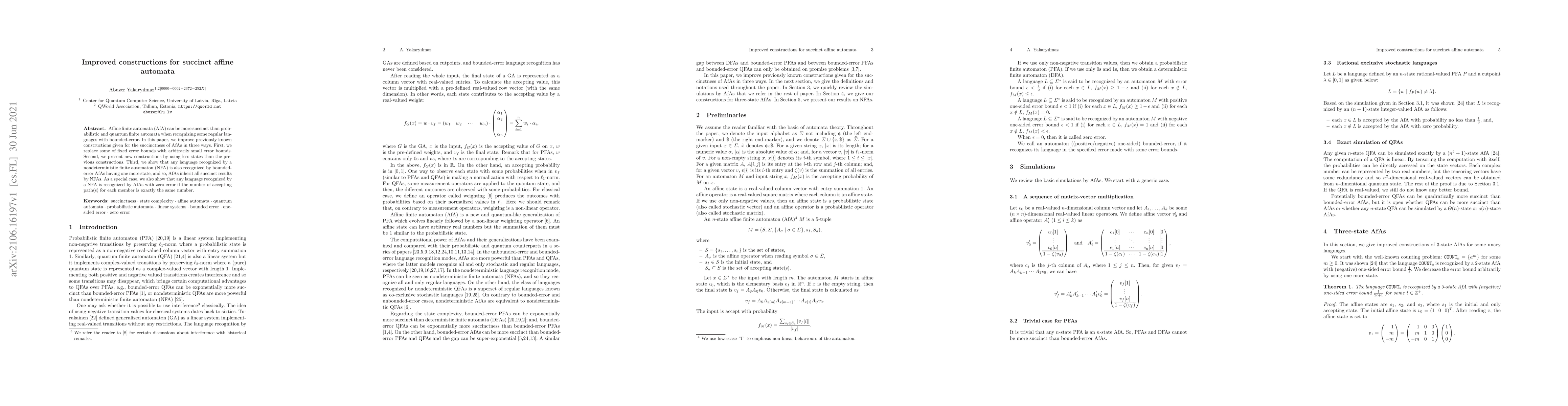 Affine finite automata (AfA) can be more succinct than probabilistic and quantum finite automata when recognizing some regular languages with bounded-error. In this paper, we improve previously known constructions given for the succinctness of AfAs in three ways. First, we replace some of fixed error bounds with arbitrarily small error bounds. Second, we present new constructions by using less states than the previous constructions. Third, we show that any language recognized by a nondeterministic finite automaton (NFA) is also recognized by bounded-error AfAs having one more state, and so, AfAs inherit all succinct results by NFAs. As a special case, we also show that any language recognized by a NFA is recognized by AfAs with zero error if the number of accepting path(s) for each member is exactly the same number.