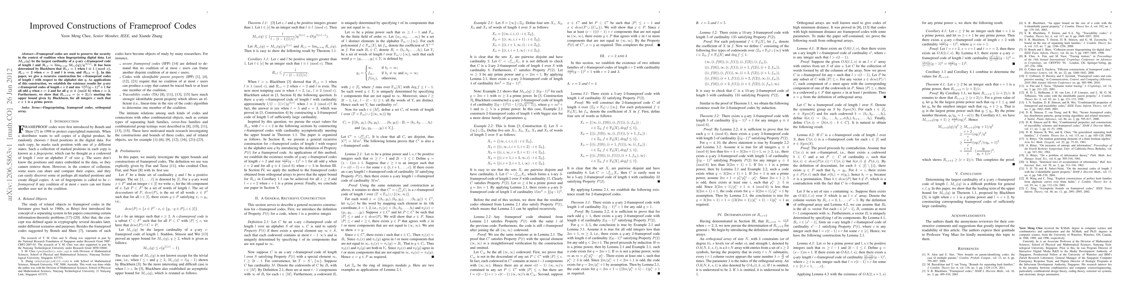 This paper presents a recursive construction for $c$-frameproof codes, enhancing the understanding of their existence and size. It establishes the existence of specific frameproof codes for lengths $c+2$ and confirms that $R_{c,c+2}$ meets Blackburn's upper bound under certain conditions.