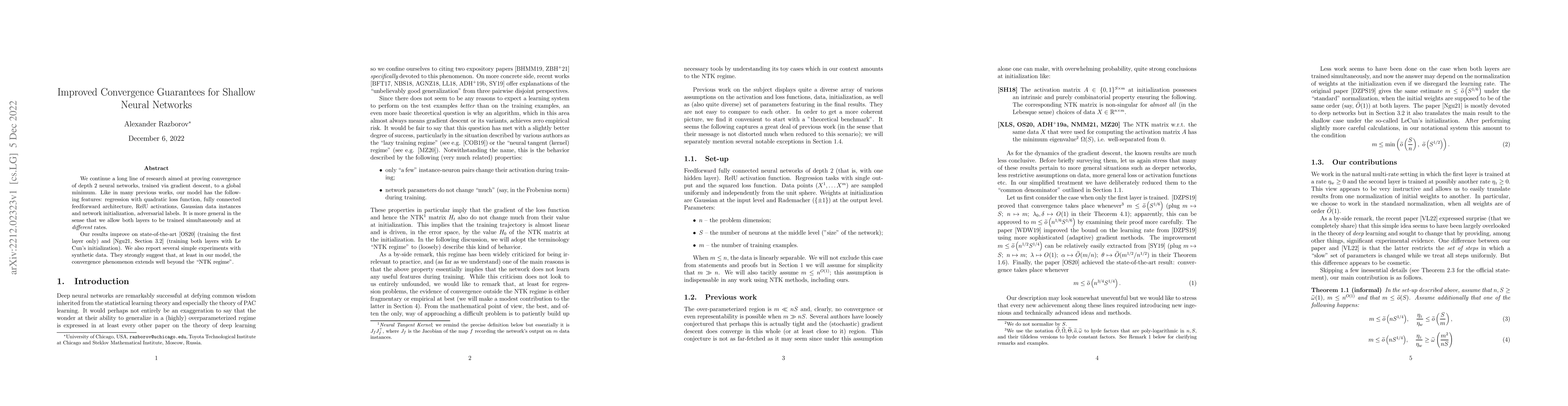 We continue a long line of research aimed at proving convergence of depth 2 neural networks, trained via gradient descent, to a global minimum. Like in many previous works, our model has the following features: regression with quadratic loss function, fully connected feedforward architecture, RelU activations, Gaussian data instances and network initialization, adversarial labels. It is more general in the sense that we allow both layers to be trained simultaneously and at {\em different} rates. Our results improve on state-of-the-art [Oymak Soltanolkotabi 20] (training the first layer only) and [Nguyen 21, Section 3.2] (training both layers with Le Cun's initialization). We also report several simple experiments with synthetic data. They strongly suggest that, at least in our model, the convergence phenomenon extends well beyond the ``NTK regime''.
