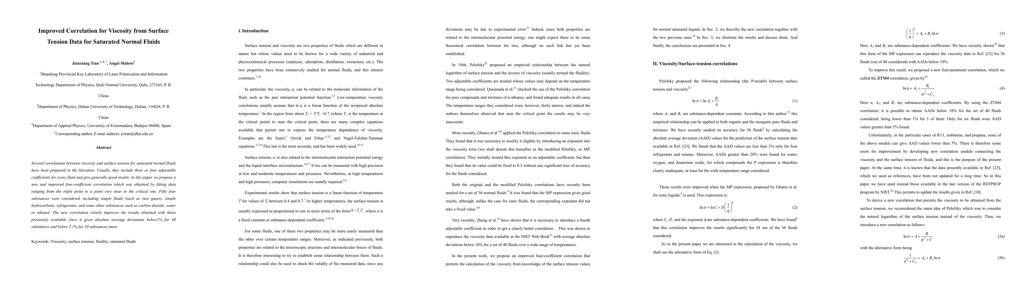 This research introduces an improved four-coefficient correlation for predicting viscosity from surface tension data in saturated normal fluids, demonstrating better accuracy with absolute average deviations below 1% for 40 substances and below 2.1% for an additional 10, compared to previous correlations.