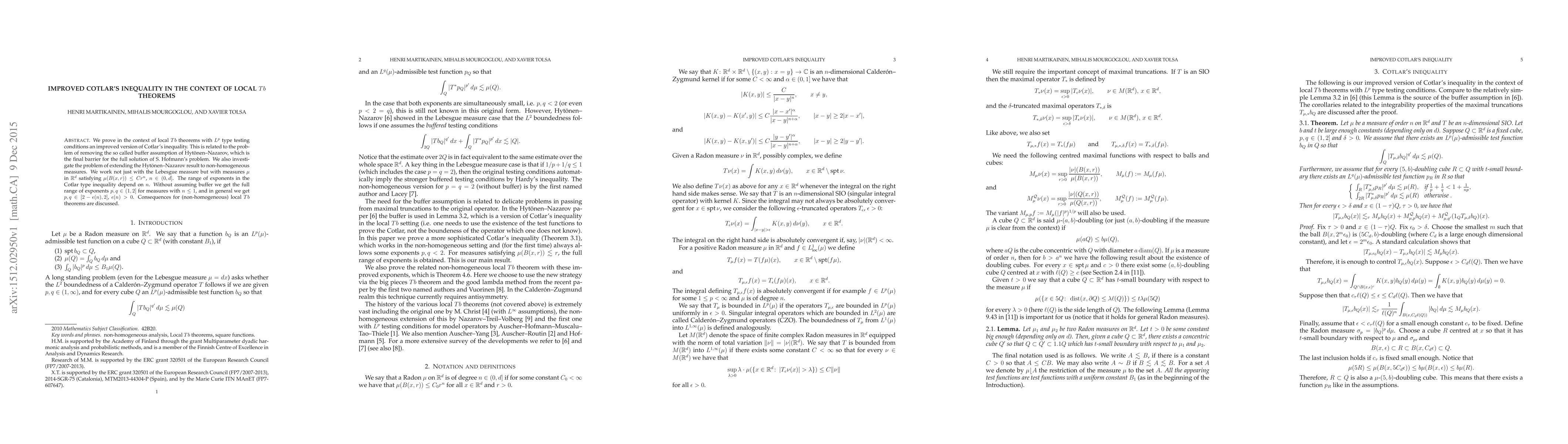 We prove in the context of local $Tb$ theorems with $L^p$ type testing conditions an improved version of Cotlar's inequality. This is related to the problem of removing the so called buffer assumption of Hyt\"onen-Nazarov, which is the final barrier for the full solution of S. Hofmann's problem. We also investigate the problem of extending the Hyt\"onen-Nazarov result to non-homogeneous measures. We work not just with the Lebesgue measure but with measures $\mu$ in $\mathbb{R}^d$ satisfying $\mu(B(x,r)) \le Cr^n$, $n \in (0, d]$. The range of exponents in the Cotlar type inequality depend on $n$. Without assuming buffer we get the full range of exponents $p,q \in (1,2]$ for measures with $n \le 1$, and in general we get $p, q \in [2-\epsilon(n), 2]$, $\epsilon(n) > 0$. Consequences for (non-homogeneous) local $Tb$ theorems are discussed.