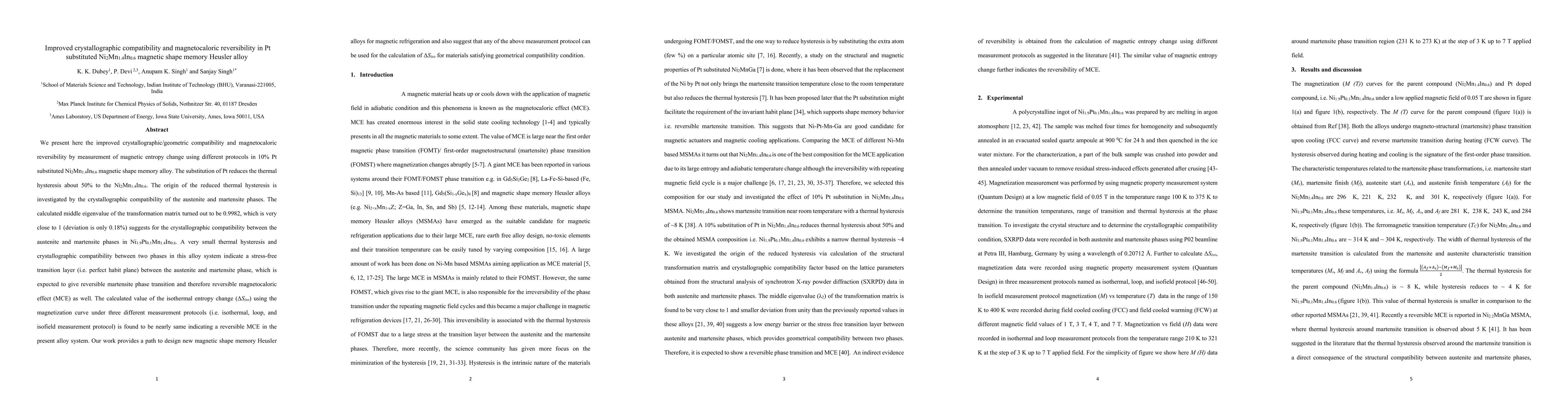 A new magnetic shape memory alloy with improved crystallographic compatibility and reversible magnetocaloric effect is developed through the substitution of Pt in Ni2Mn1.4In0.6, enabling stress-free transition layers and potential applications in magnetic refrigeration.