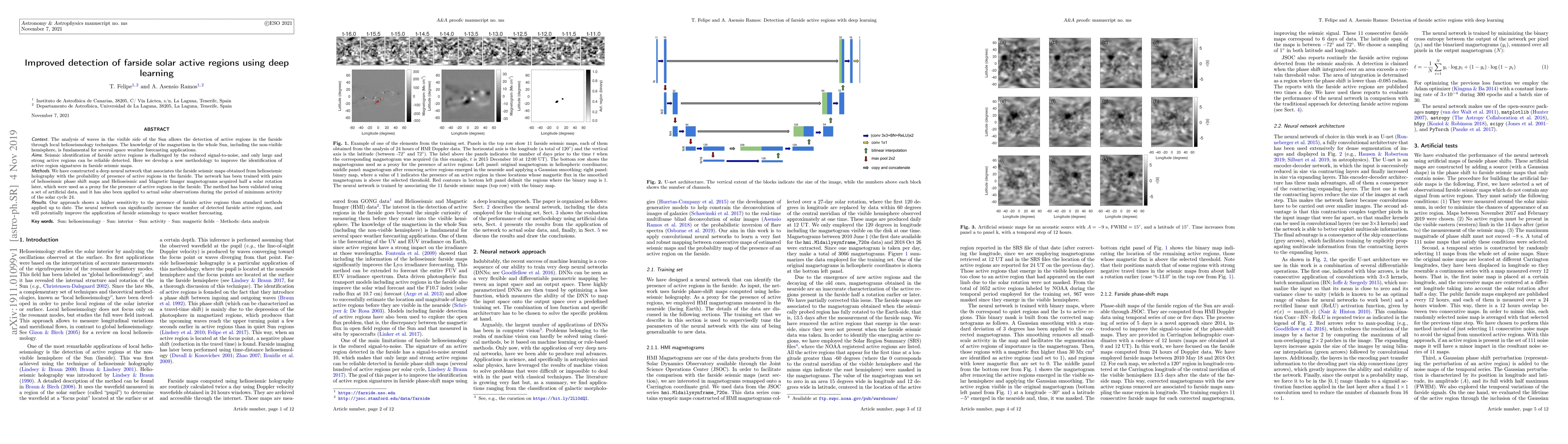 This paper develops a deep learning methodology to enhance the detection of farside solar active regions using helioseismic data. The deep neural network improves the identification of active regions in farside seismic maps, showing greater sensitivity than traditional methods.