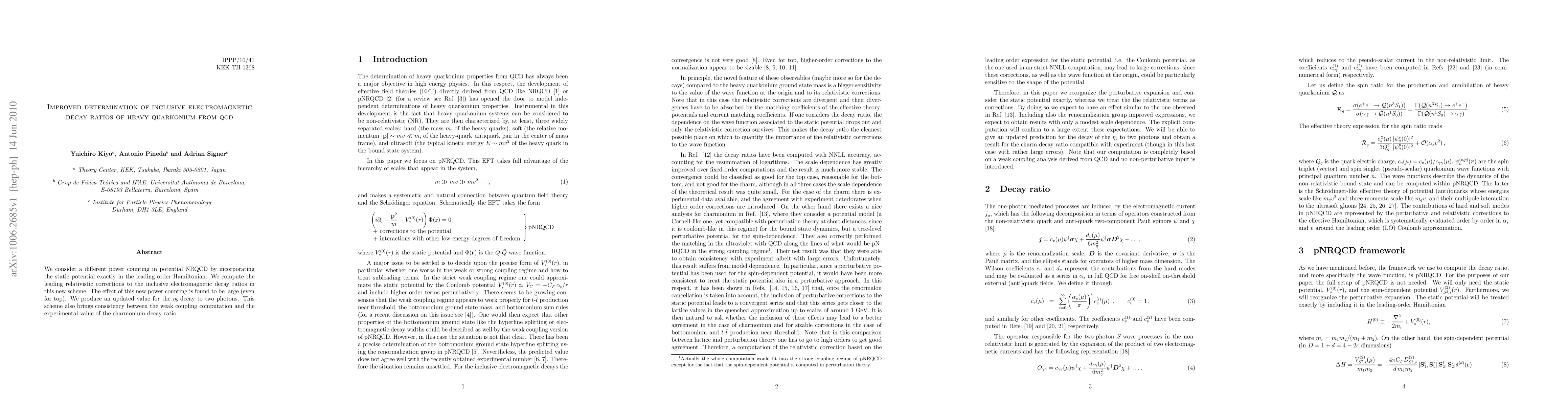 We consider a different power counting in potential NRQCD by incorporating the static potential exactly in the leading order Hamiltonian. We compute the leading relativistic corrections to the inclusive electromagnetic decay ratios in this new scheme. The effect of this new power counting is found to be large (even for top). We produce an updated value for the $\eta_b$ decay to two photons. This scheme also brings consistency between the weak coupling computation and the experimental value of the charmonium decay ratio.