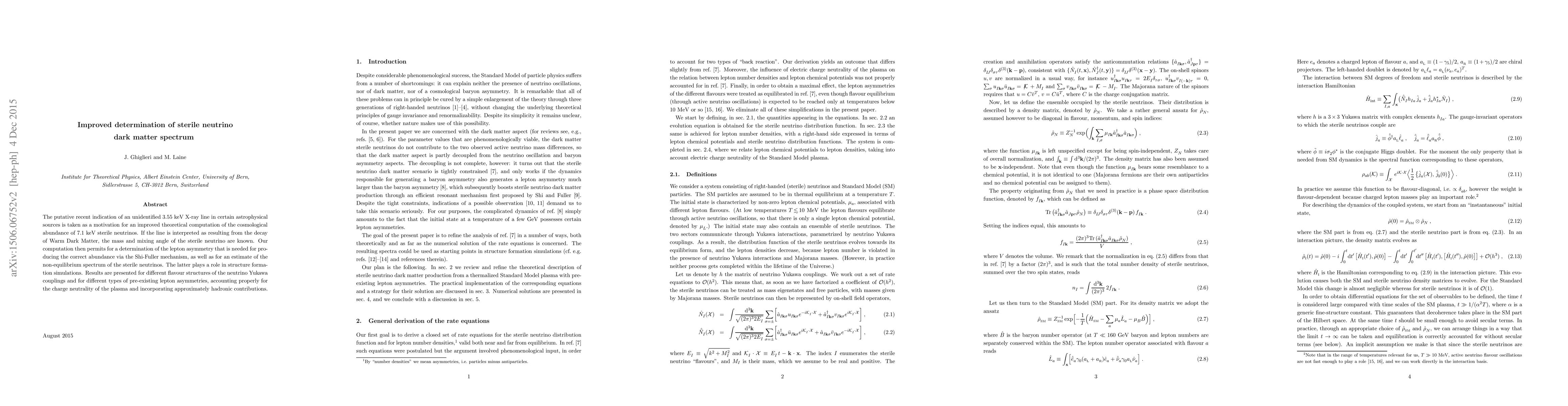The putative recent indication of an unidentified 3.55 keV X-ray line in certain astrophysical sources is taken as a motivation for an improved theoretical computation of the cosmological abundance of 7.1 keV sterile neutrinos. If the line is interpreted as resulting from the decay of Warm Dark Matter, the mass and mixing angle of the sterile neutrino are known. Our computation then permits for a determination of the lepton asymmetry that is needed for producing the correct abundance via the Shi-Fuller mechanism, as well as for an estimate of the non-equilibrium spectrum of the sterile neutrinos. The latter plays a role in structure formation simulations. Results are presented for different flavour structures of the neutrino Yukawa couplings and for different types of pre-existing lepton asymmetries, accounting properly for the charge neutrality of the plasma and incorporating approximately hadronic contributions.