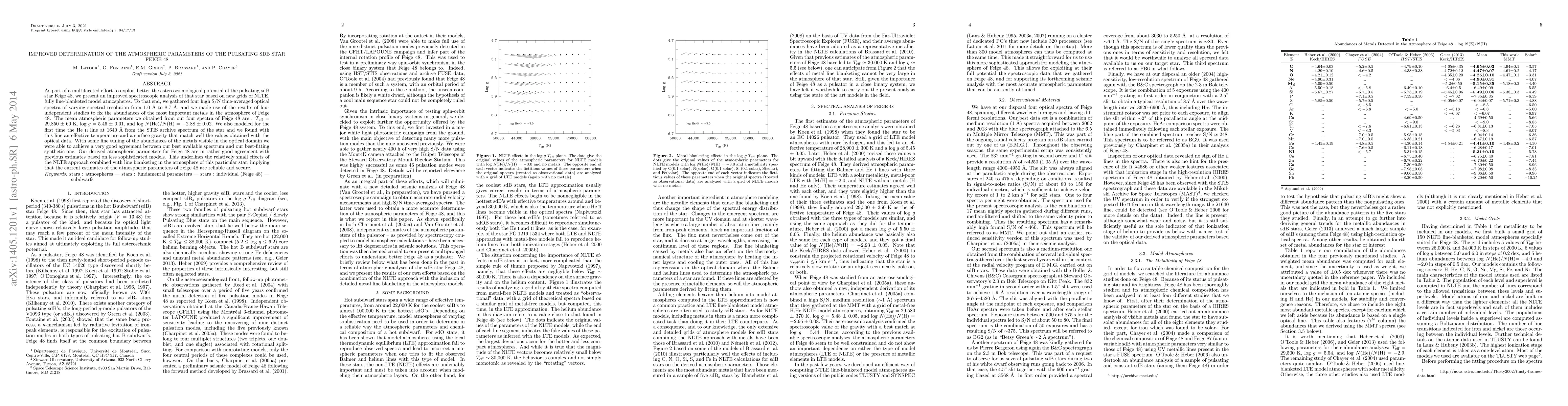 This paper presents an improved spectroscopic analysis of the pulsating sdB star Feige 48 using new NLTE model atmospheres, yielding atmospheric parameters of Teff= 29,850 $\pm$ 60 K, log $g$ = 5.46 $\pm$ 0.01, and log N(He)/N(H) = $-$2.88 $\pm$ 0.02. The results confirm the reliability of current estimates despite the use of advanced modeling techniques.