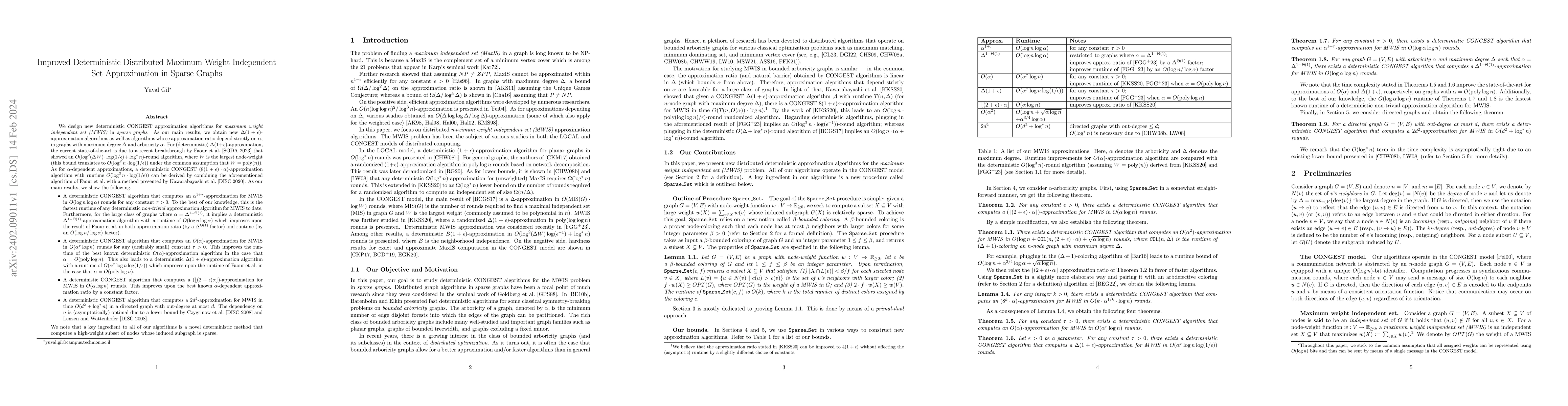 This paper presents new deterministic CONGEST approximation algorithms for the maximum weight independent set problem in sparse graphs, achieving $\Delta(1+\epsilon)$-approximation and $\alpha$-dependent approximations, improving upon the state-of-the-art results by Faour et al. and Kawarabayashi et al.
