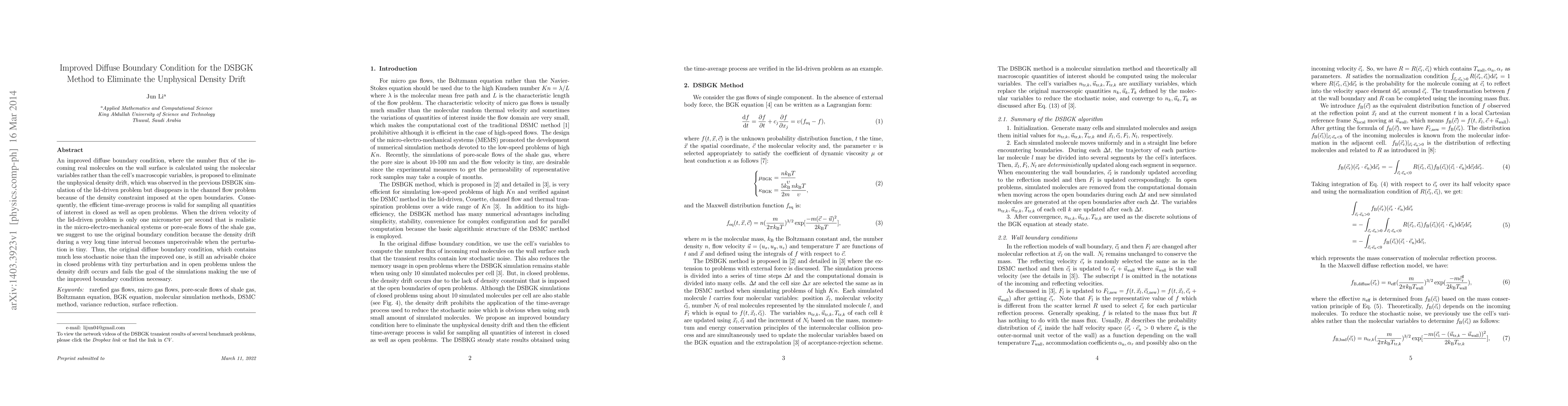 A new boundary condition is proposed to eliminate unphysical density drift in simulations, ensuring accurate results for both closed and open problems. For small perturbations, the original diffuse boundary condition may be sufficient.