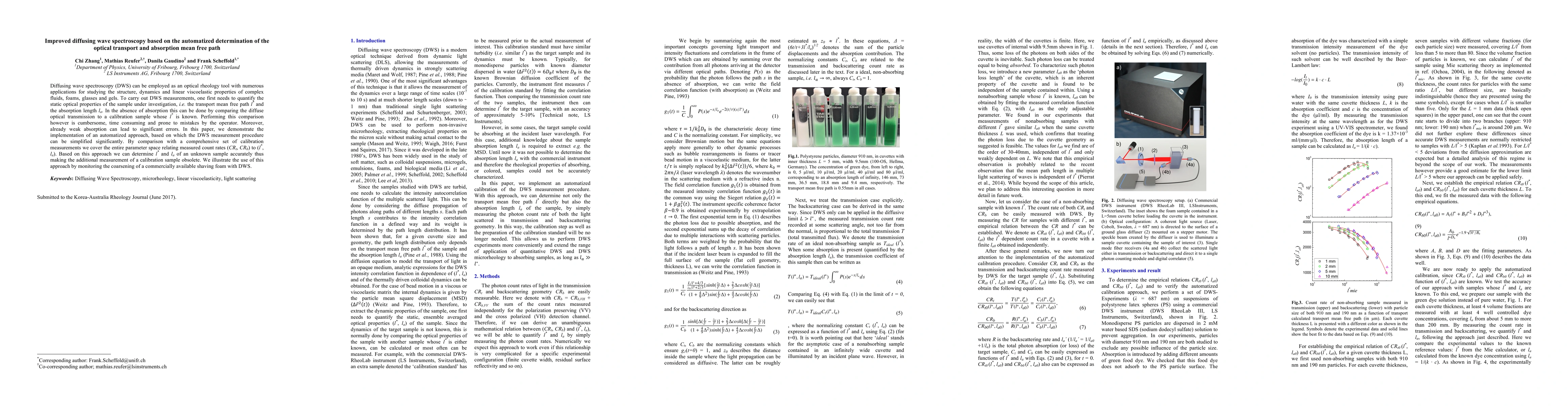 Diffusing wave spectroscopy (DWS) can be employed as an optical rheology tool with numerous applications for studying the structure, dynamics and linear viscoelastic properties of complex fluids, foams, glasses and gels. To carry out DWS measurements, one first needs to quantify the static optical properties of the sample under investigation, i.e. the transport mean free path $l^\ast$ and the absorption length $l_a$. In the absence of absorption this can be done by comparing the diffuse optical transmission to a calibration sample whose $l^\ast$ is known. Performing this comparison however is cumbersome, time consuming and prone to mistakes by the operator. Moreover, already weak absorption can lead to significant errors. In this paper, we demonstrate the implementation of an automatized approach, based on which the DWS measurement procedure can be simplified significantly. By comparison with a comprehensive set of calibration measurements we cover the entire parameter space relating measured count rates (CR$_t$, CR$_b$) to ($l^\ast$, $l_a$). Based on this approach we can determine $l^\ast$ and $l_a$ of an unknown sample accurately thus making the additional measurement of a calibration sample obsolete. We illustrate the use of this approach by monitoring the coarsening of a commercially available shaving foam with DWS.