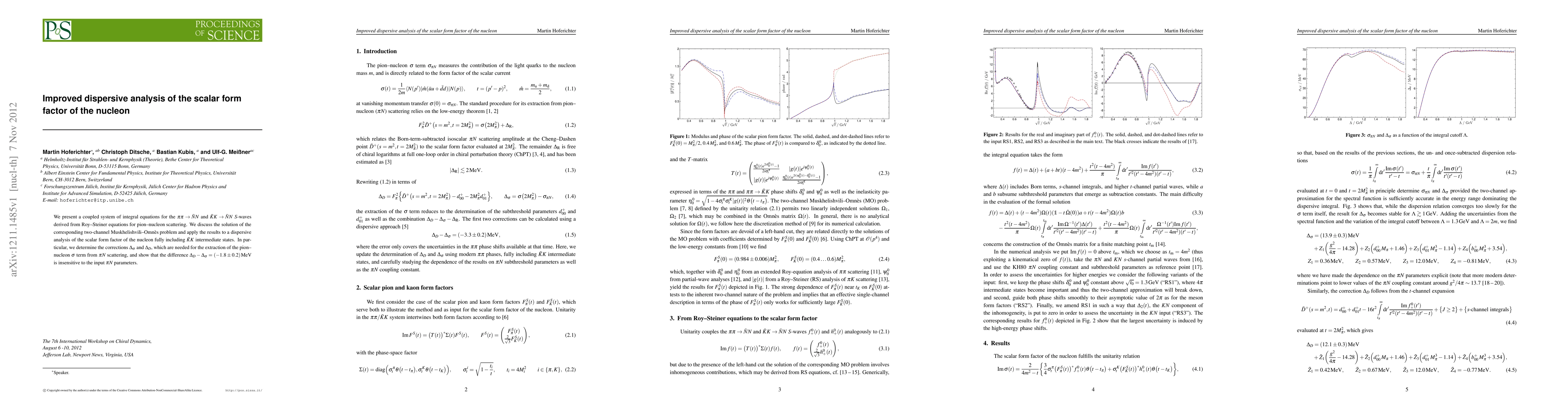 This paper develops a coupled system of integral equations for pion-nucleon and kaon-nucleon scattering to analyze the nucleon's scalar form factor, incorporating K-K intermediate states. It determines the corrections Delta_sigma and Delta_D for extracting the pion-nucleon sigma term, finding Delta_D - Delta_sigma=(-1.8 +/- 0.2) MeV, which is robust against variations in input parameters.