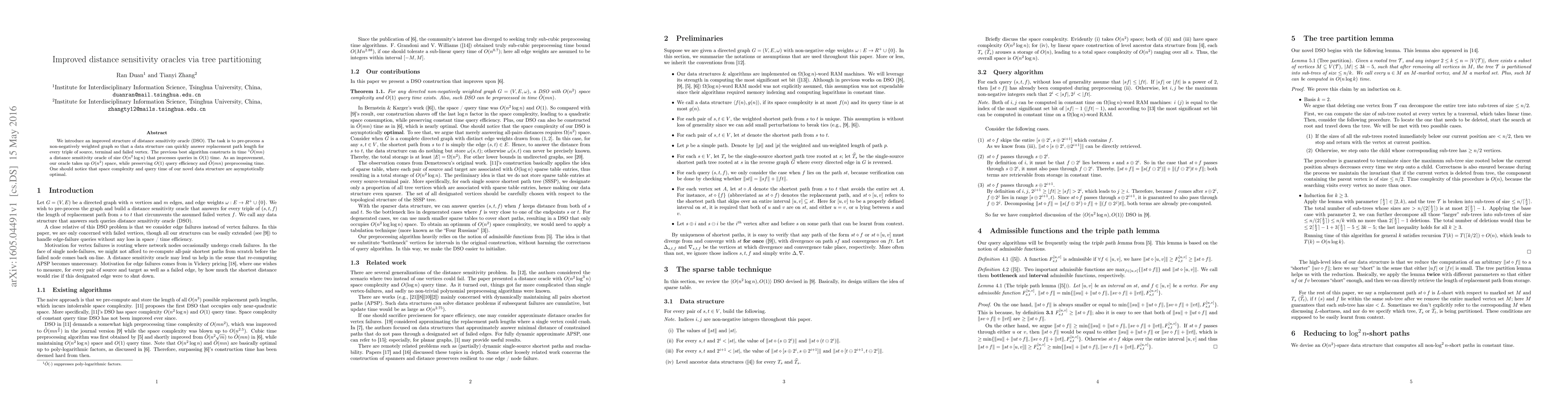 We introduce an improved structure of distance sensitivity oracle (DSO). The task is to pre-process a non-negatively weighted graph so that a data structure can quickly answer replacement path length for every triple of source, terminal and failed vertex. The previous best algorithm constructs in time $\tilde{O}(mn)$ a distance sensitivity oracle of size $O(n^2\log n)$ that processes queries in $O(1)$ time. As an improvement, our oracle takes up $O(n^2)$ space, while preserving $O(1)$ query efficiency and $\tilde{O}(mn)$ preprocessing time. One should notice that space complexity and query time of our novel data structure are asymptotically optimal.