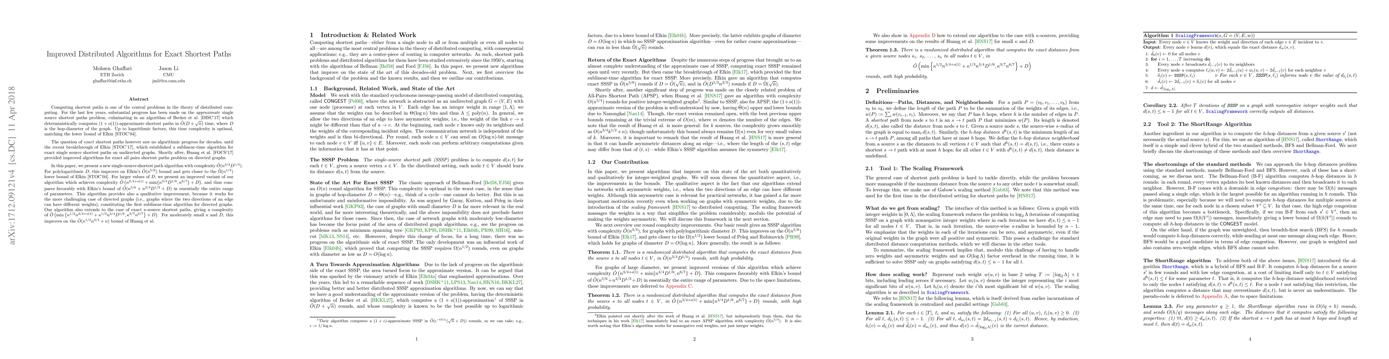 The paper presents new distributed algorithms for computing exact shortest paths in networks, utilizing a scaling framework approach combined with a short-range algorithm and a virtual graph construction.