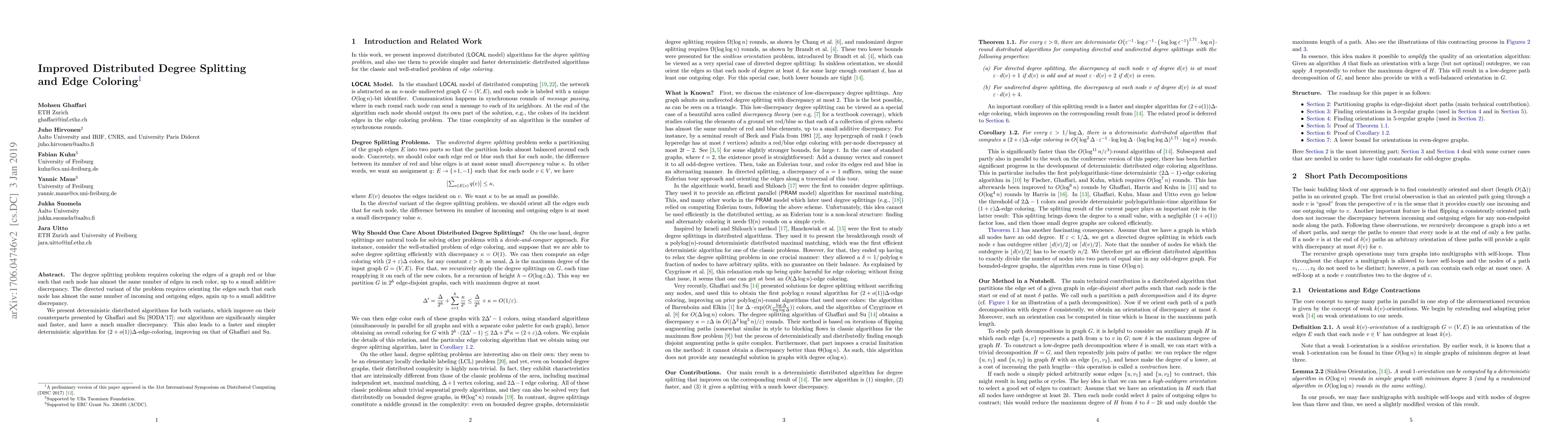 This paper presents improved deterministic distributed algorithms for both the degree splitting and directed degree splitting problems, achieving simpler, faster, and more accurate results compared to previous methods by Ghaffari and Su, and also enhancing the efficiency of $(2+o(1))\Delta$-edge-coloring.
