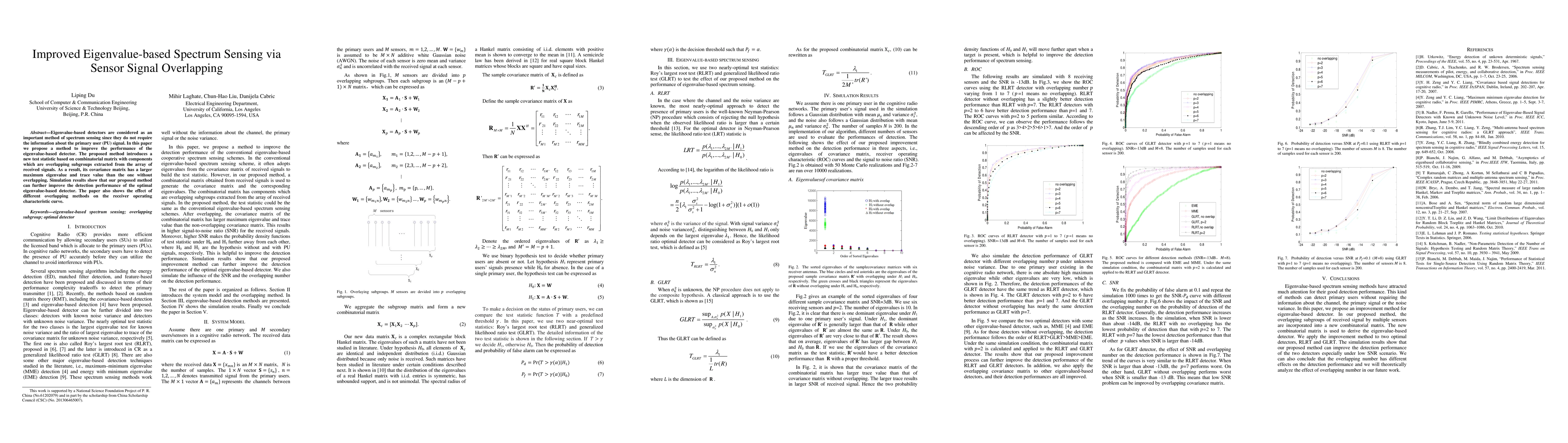 This paper proposes an improved eigenvalue-based spectrum sensing method using overlapping subgroups from received signals to enhance the test statistic. The new method results in a covariance matrix with a larger maximum eigenvalue and trace value, thereby improving detection performance.
