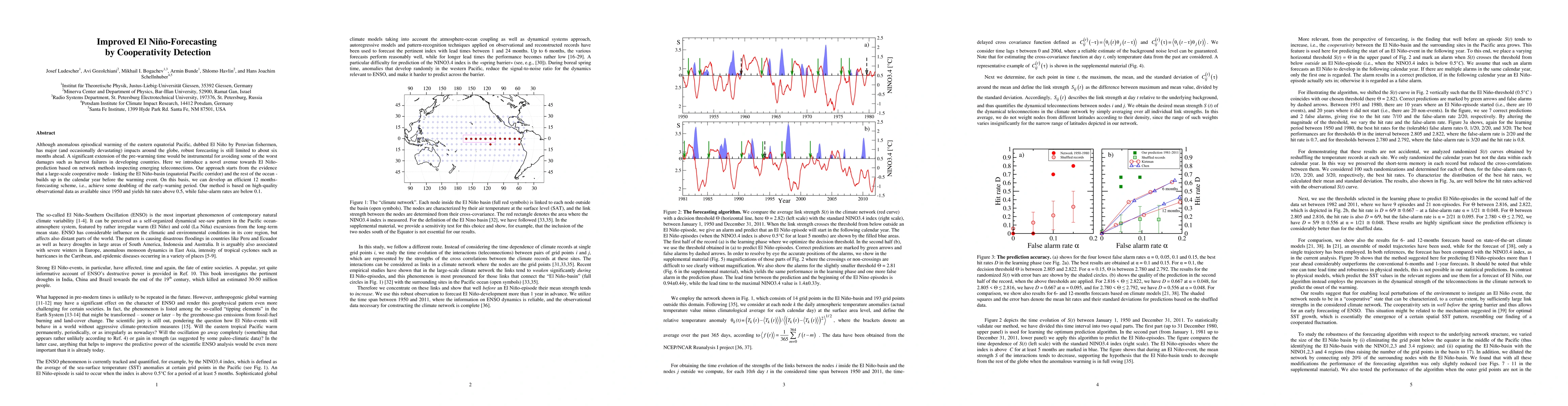 This paper proposes a novel method for improving El Niño forecasting by detecting cooperative modes in oceanic teleconnections, leading to a 12-month prediction scheme that doubles the early warning period. The approach leverages high-quality observational data and shows high hit rates and low false-alarm rates.