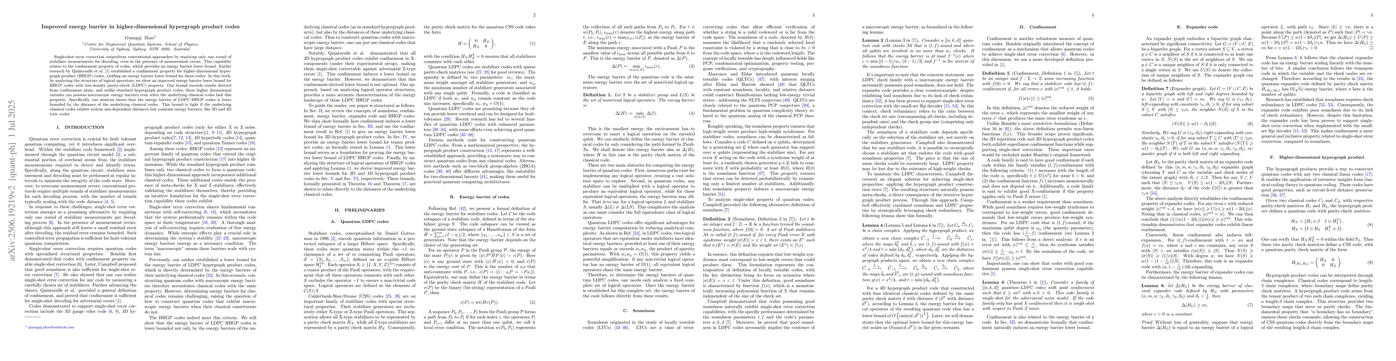 Single-shot error correction outperform conventional approaches by requiring only one round of stabilizer measurements for decoding, even in the presence of measurement errors. This capability relates to the confinement property of codes, which provides an energy barrier lower bound. Earlier research established a confinement property for higher-dimensional hypergraph product (HHGP) codes (Quintavalle et al. 2021 PRX Quantum), resulting in an energy barrier lower bound for these codes. In this work, we show an improved energy barrier lower bound for HHGP codes with low-density parity-check (LDPC) properties. This bound is derived by analyzing the structure of the logical operators. Our bound exceeds results derived from confinement alone, and unlike standard hypergraph product codes, these higher dimensional variants can possess macroscopic energy barriers even when the underlying classical codes lack this property. Specifically, our analysis shows that the energy barrier of LDPC HHGP codes is lower bounded by the distance of the underlying classical codes. This lower bound is tight if the underlying classical codes exhibit system size-dependent distances but constant energy barriers, like 3D and 4D toric codes.