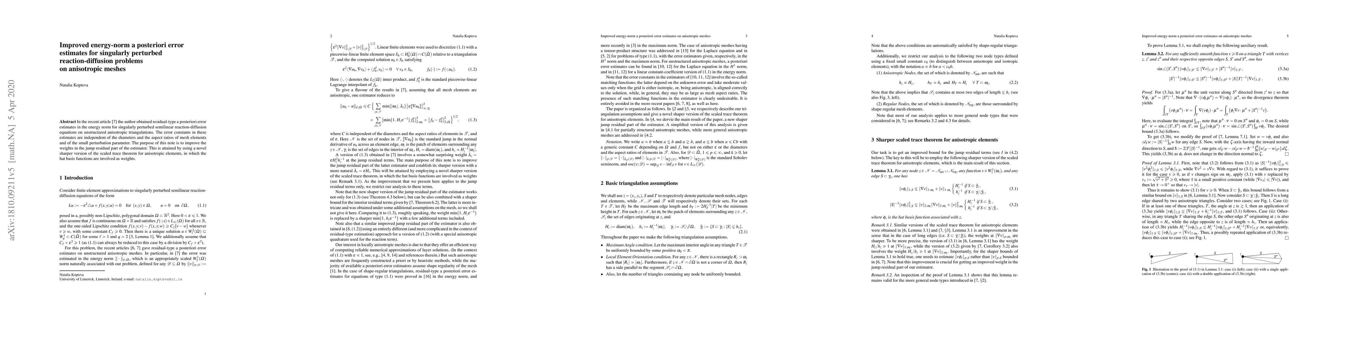 In the recent article [Kopteva, N., Numer. Math., 137, 607--642 (2017)] the author obtained residual-type a posteriori error estimates in the energy norm for singularly perturbed semilinear reaction-diffusion equations on anisotropic triangulations. The error constants in these estimates are independent of the diameters and the aspect ratios of mesh elements and of the small perturbation parameter. The purpose of this note is to improve the weights in the jump residual part of the estimator. This is attained by using a novel sharper version of the scaled trace theorem for anisotropic elements, in which the hat basis functions are involved as weights.