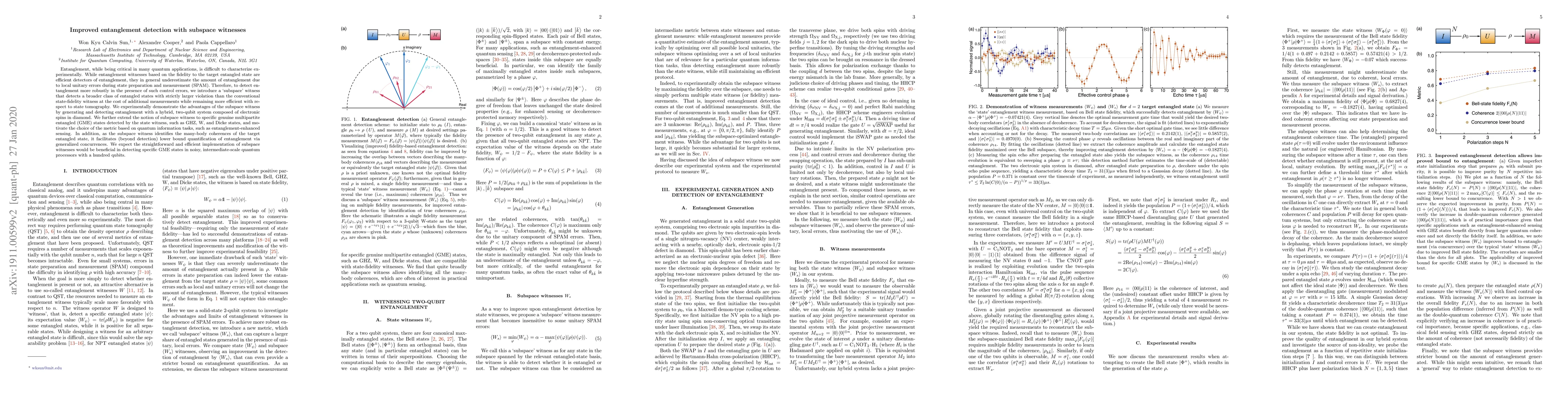 Entanglement, while being critical in many quantum applications, is difficult to characterize experimentally. While entanglement witnesses based on the fidelity to the target entangled state are efficient detectors of entanglement, they in general underestimate the amount of entanglement due to errors during state preparation and measurement. Therefore, to detect entanglement more robustly in the presence of such control errors, we introduce a 'subspace' witness that detects a broader class of entangled states with strictly larger violation than the conventional state-fidelity witness at the cost of additional measurements, while remaining more efficient with respect to state tomography. We experimentally demonstrate the advantages of the subspace witness by generating and detecting entanglement with a hybrid, two-qubit system composed of electronic spins in diamond. We further extend the notion of subspace witness to specific genuine multipartite entangled (GME) states such as GHZ, W, and Dicke states, and motivate the choice of the metric based on quantum information tasks such as entanglement-enhanced sensing. In addition, as the subspace witness identifies the many-body coherences of the target entangled state, it facilitates (beyond detection) lower-bound quantification of entanglement via generalized concurrences. We expect the straightforward and efficient implementation of subspace witnesses would be beneficial in detecting specific GME states in noisy, intermediate-scale quantum processors with a hundred qubits.