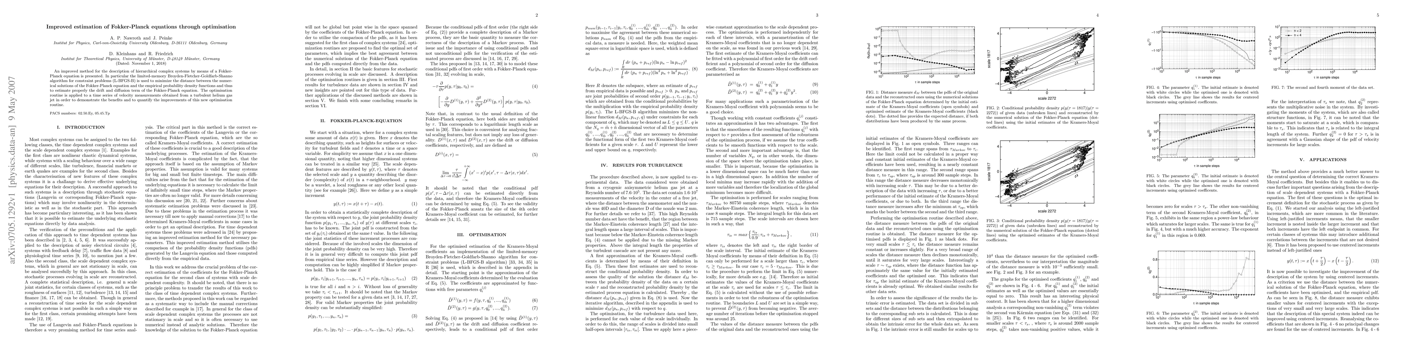 An improved method for the description of hierarchical complex systems by means of a Fokker-Planck equation is presented. In particular the limited-memory Broyden-Fletcher-Goldfarb-Shanno algorithm for constraint problems (L-BFGS-B) is used to minimize the distance between the numerical solutions of the Fokker-Planck equation and the empirical probability density functions and thus to estimate properly the drift and diffusion term of the Fokker-Planck equation. The optimisation routine is applied to a time series of velocity measurements obtained from a turbulent helium gas jet in order to demonstrate the benefits and to quantify the improvements of this new optimisation routine.