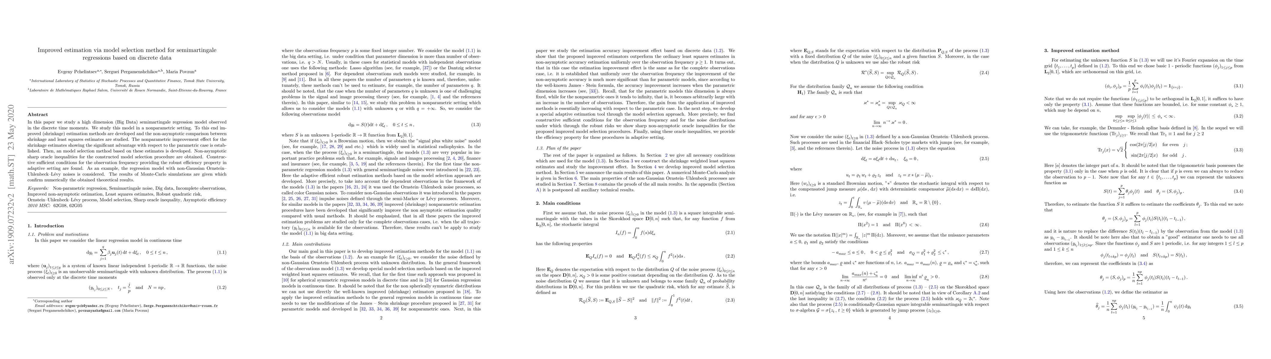 Summary: This paper proposes a robust adaptive nonparametric estimation method for periodic functions in continuous time semimartingale regression models, focusing on improving accuracy through model selection based on discrete data observations.