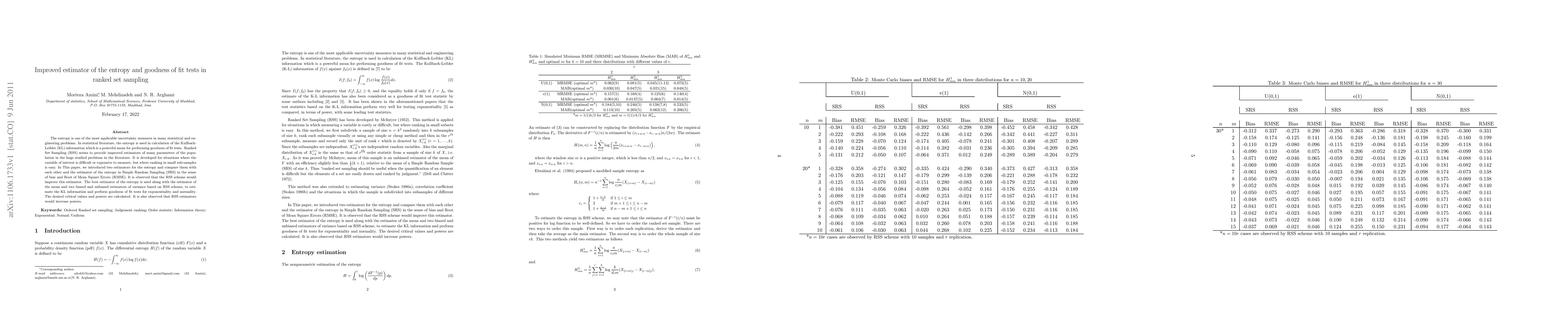 The entropy is one of the most applicable uncertainty measures in many statistical and en- gineering problems. In statistical literature, the entropy is used in calculation of the Kullback- Leibler (KL) information which is a powerful mean for performing goodness of fit tests. Ranked Set Sampling (RSS) seems to provide improved estimators of many parameters of the popu- lation in the huge studied problems in the literature. It is developed for situations where the variable of interest is difficult or expensive to measure, but where ranking in small sub-samples is easy. In This paper, we introduced two estimators for the entropy and compare them with each other and the estimator of the entropy in Simple Random Sampling (SRS) in the sense of bias and Root of Mean Square Errors (RMSE). It is observed that the RSS scheme would improve this estimator. The best estimator of the entropy is used along with the estimator of the mean and two biased and unbiased estimators of variance based on RSS scheme, to esti- mate the KL information and perform goodness of fit tests for exponentiality and normality. The desired critical values and powers are calculated. It is also observed that RSS estimators would increase powers.