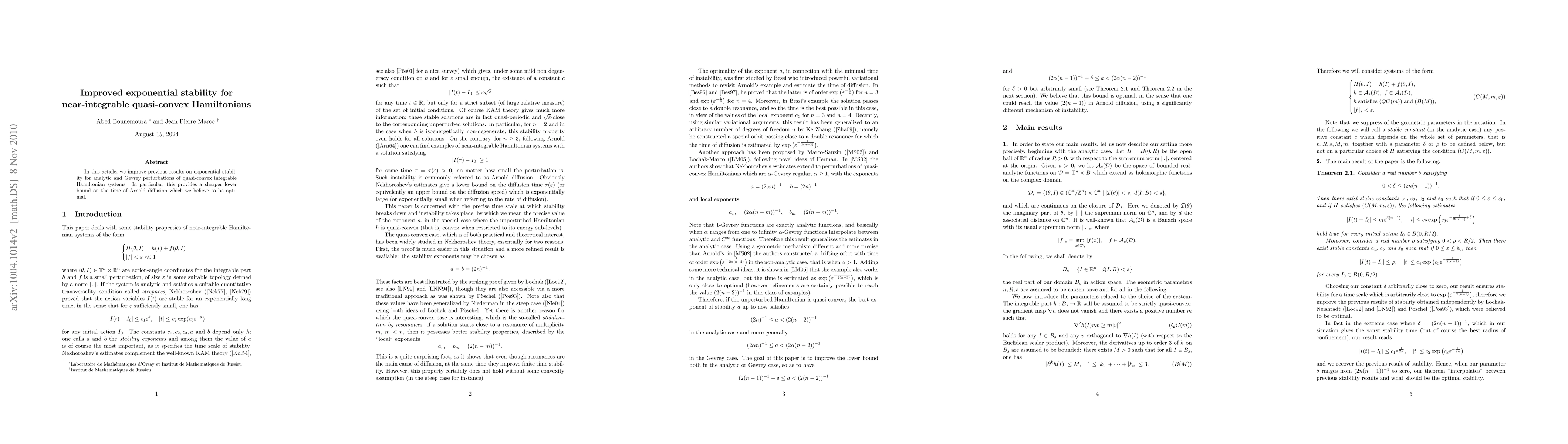 This paper enhances the understanding of exponential stability in quasi-convex Hamiltonian systems, offering a more precise upper bound on the rate of Arnold diffusion for analytic and Gevrey perturbations, potentially achieving optimal results.