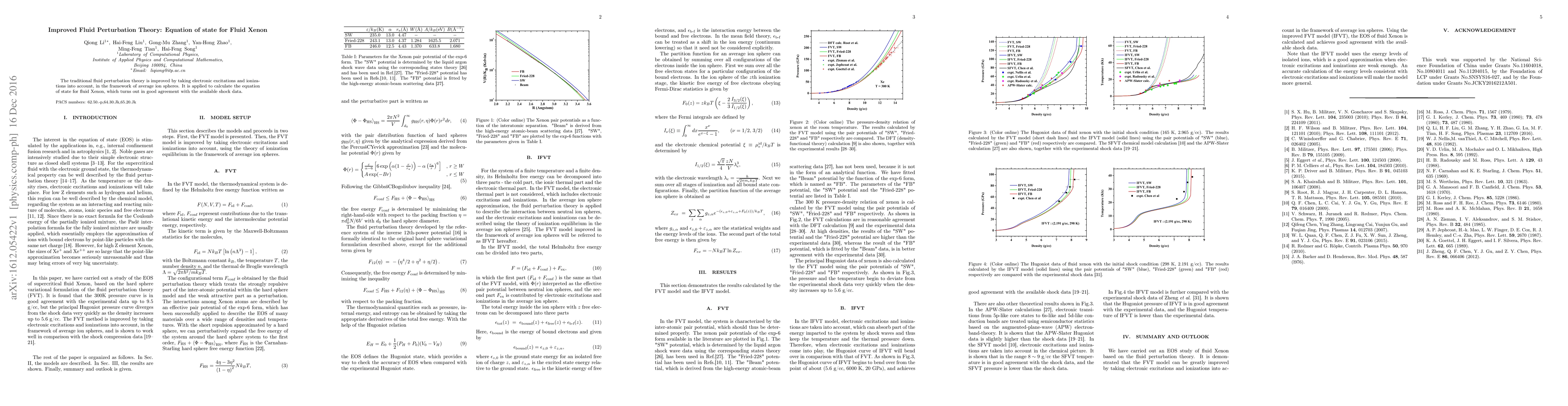 The traditional fluid perturbation theory is improved by taking electronic excitations and ionizations into account, in the framework of average ion spheres. It is applied to calculate the equation of state for fluid Xenon, which turns out in good agreement with the available shock data.
